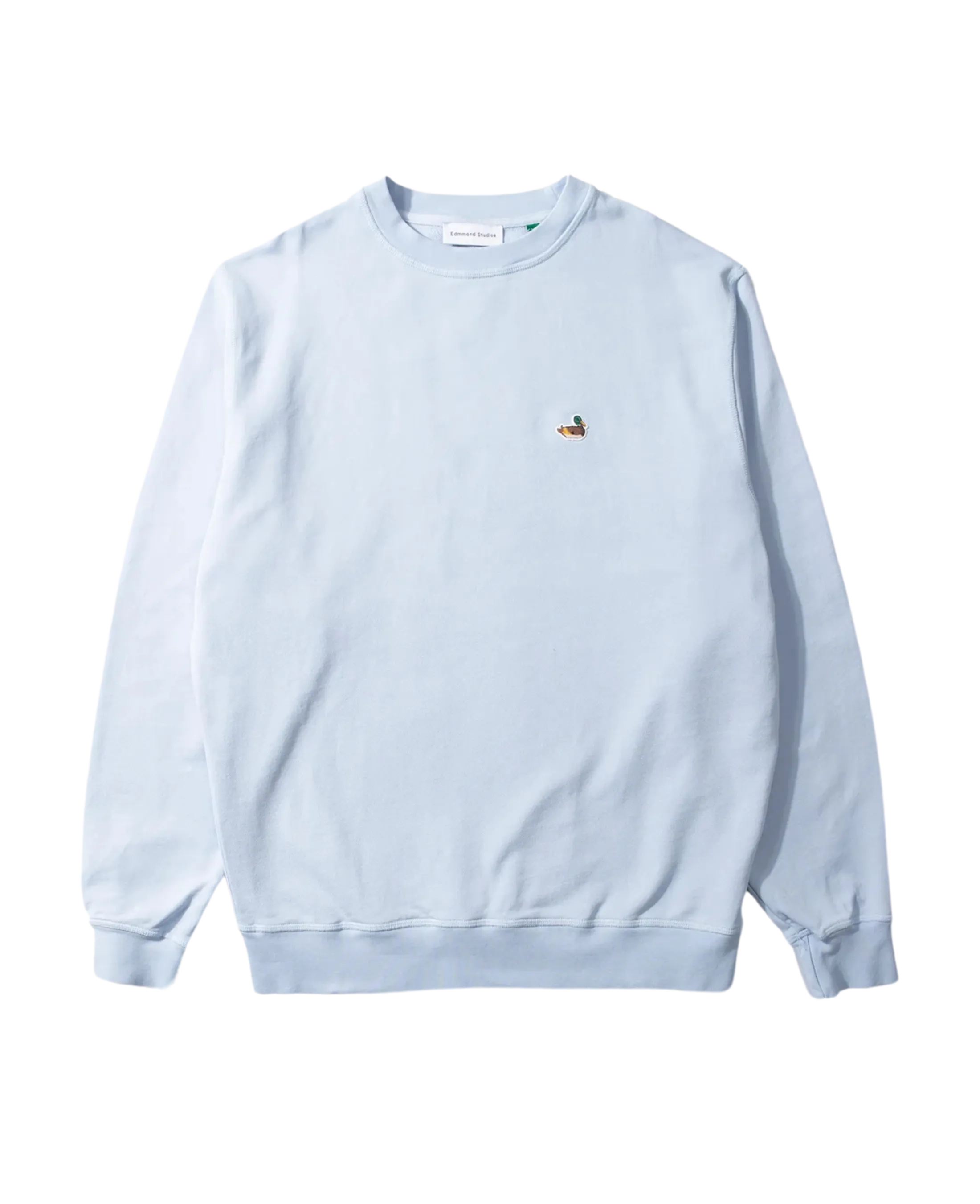 Classic light blue sweatshirt made from 100% cotton. It features ribbed cuffs and hem for a comfortable fit. Finished with the iconic Edmond Studios duck logo embroidered on the chest.
