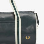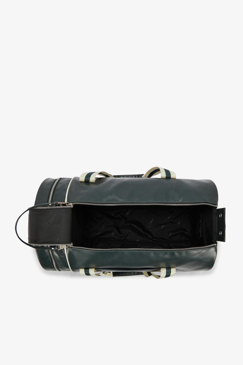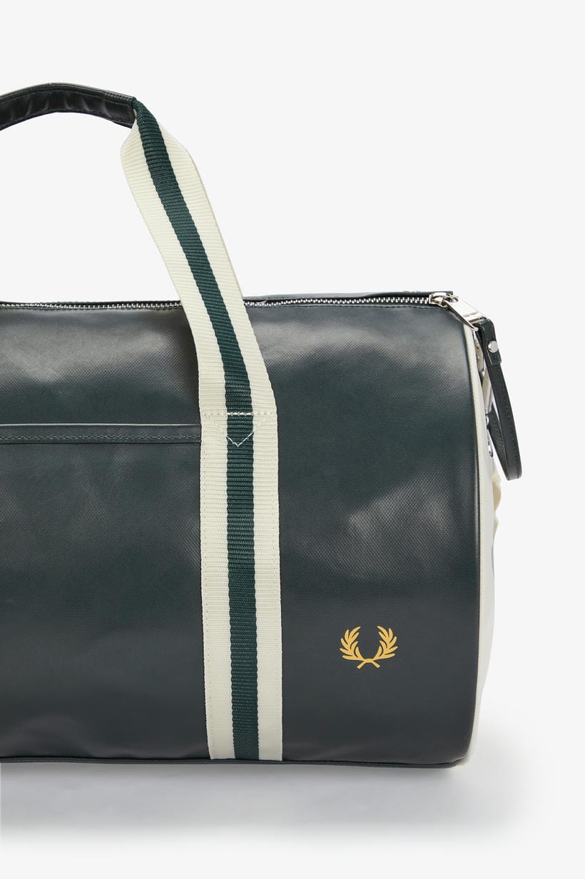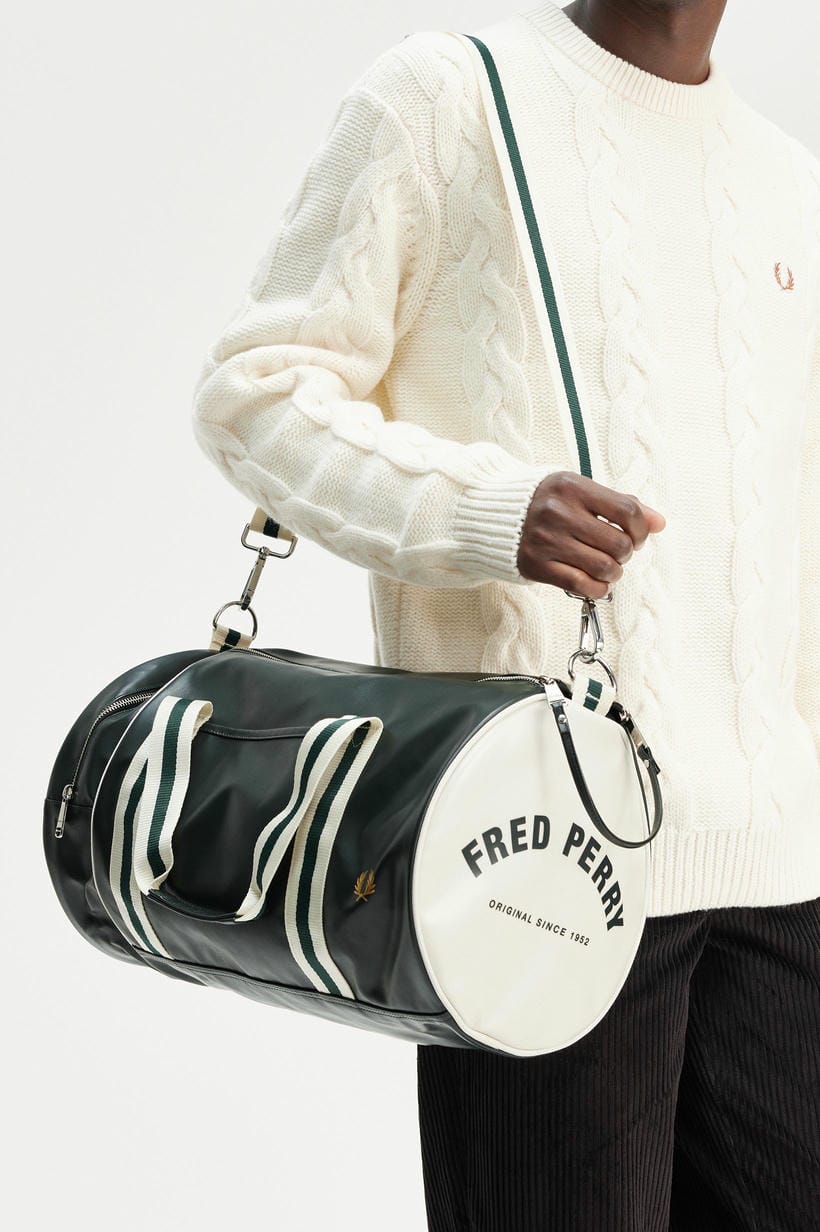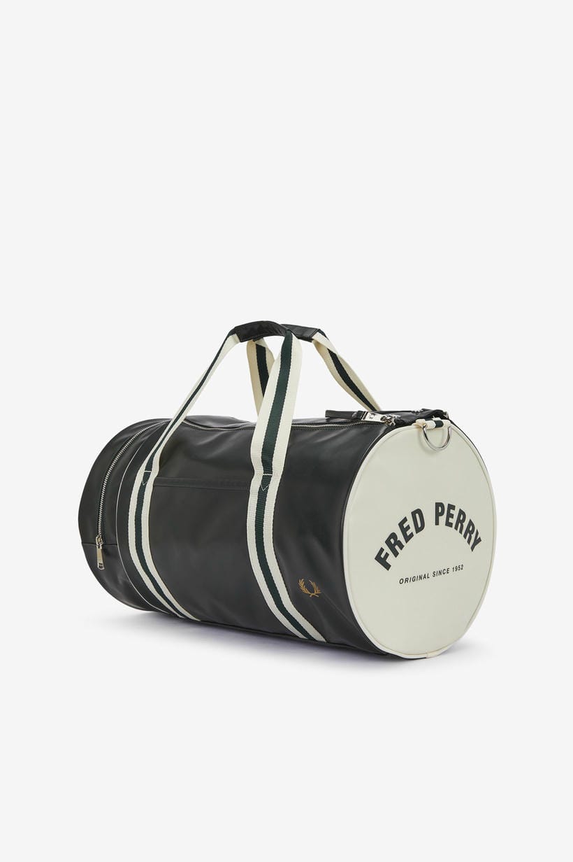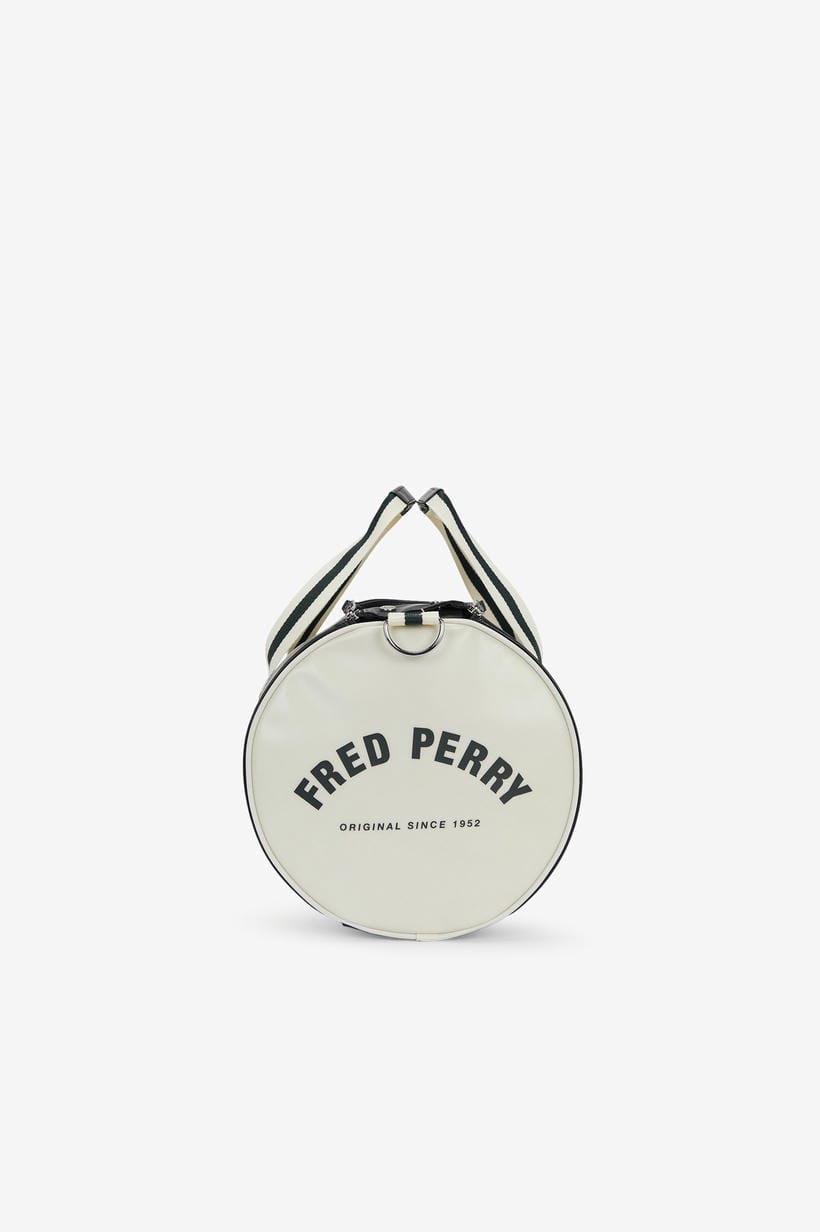 Esta bolsa, confeccionada de manera a garantizar que adquiere un aspecto desgastado con los años, conserva todas las características deportivas clásicas del diseño, como la abertura superior con cremallera doble y bolsillo redondo, las correas ajustables para llevarla cruzada y dos asas con nuestro ribete en contraste. Además, luce un logotipo estampado en contraste en ambos extremos y una corona de laurel repujada en tono dorado metalizado en el panel delantero, para reforzar su carácter inconfundiblemente Fred Perry.