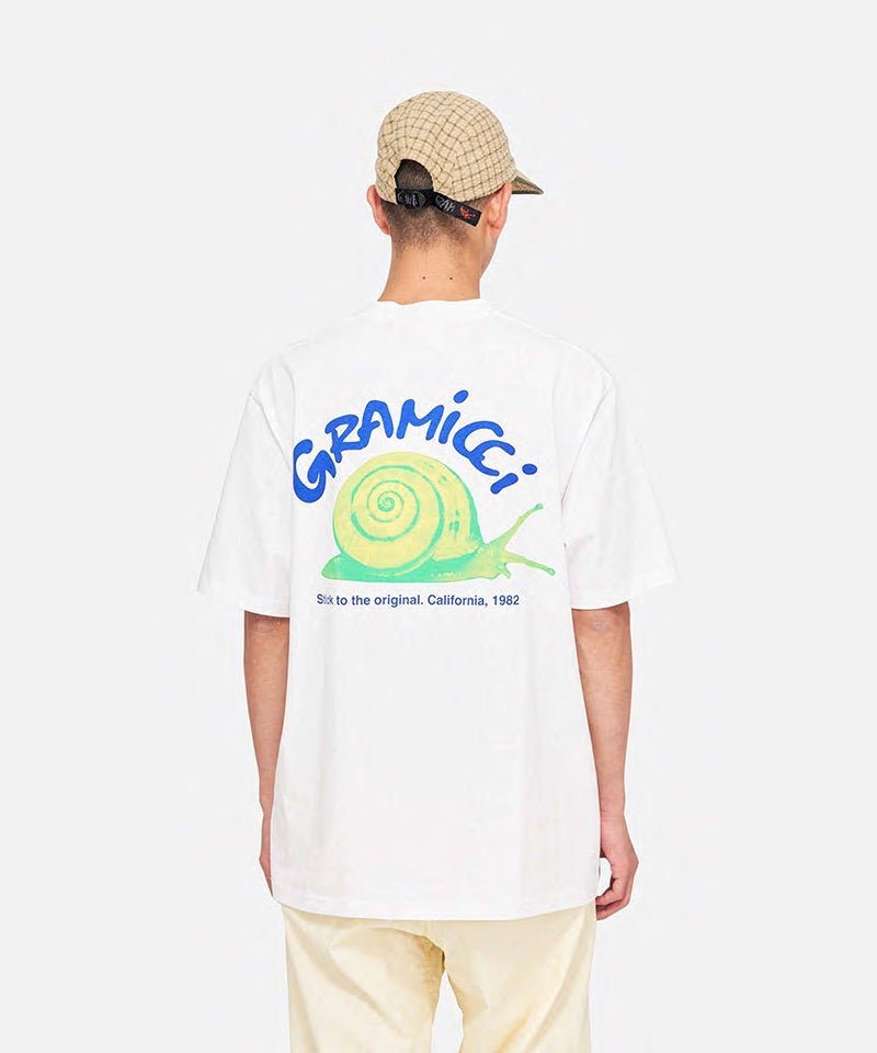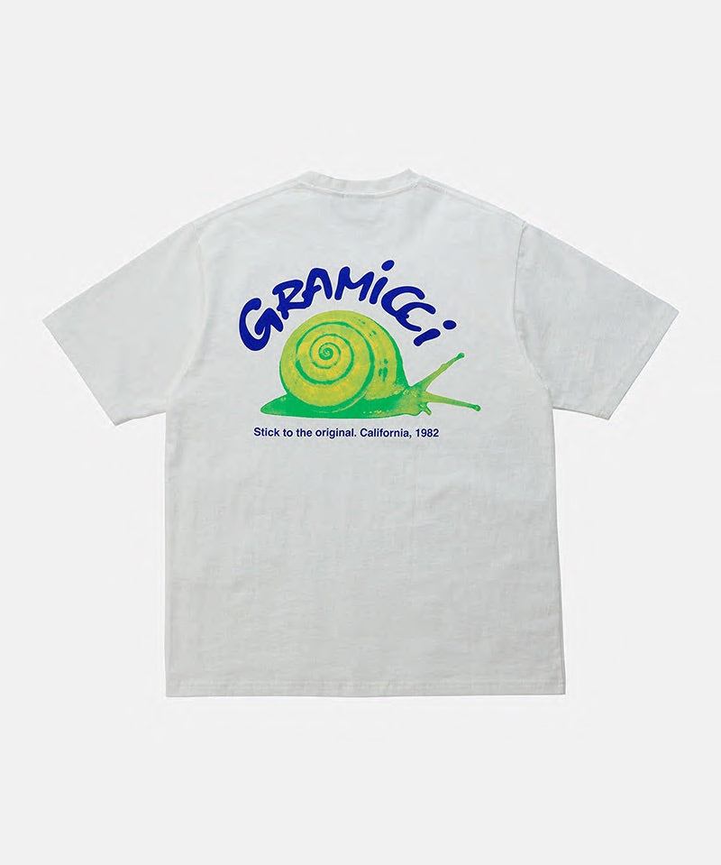 Gramicci's Snail Tee brings a touch of whimsy to your everyday essentials. This midweight knit tee features our relaxed snail graphic that reminds you to slow down and enjoy the climb. Made from organic cotton, it's the kind of tee that feels good whether you're climbing on a warm afternoon or layering up for a chilly morning. Like our favorite mollusk friend, this tee takes life at its own pace—and looks good doing it.