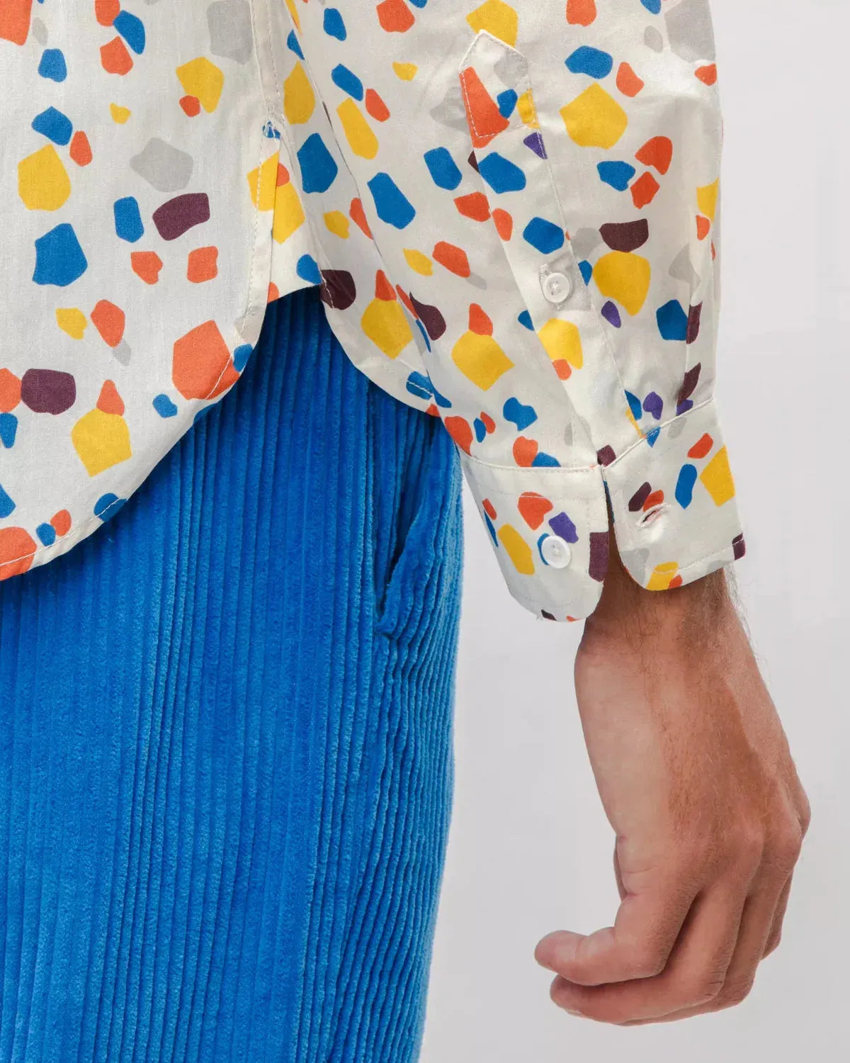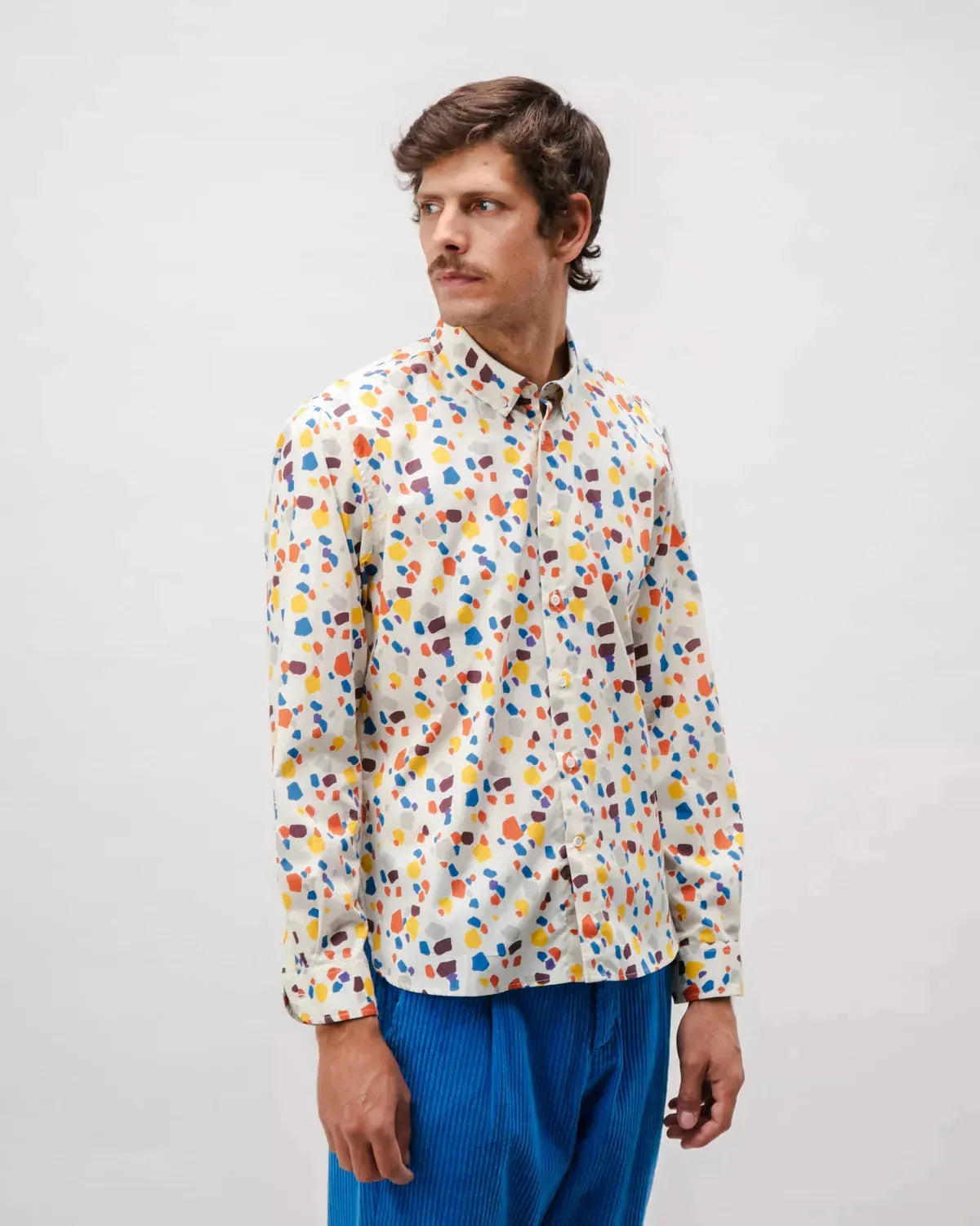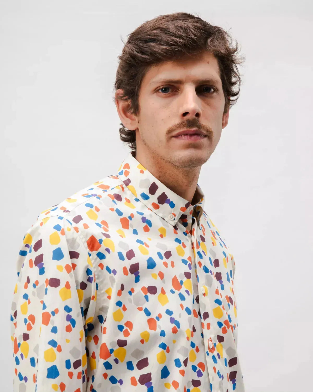 Long-sleeved printed shirt with a regular fit and straight cut with a decorative detail on the sleeve hem. It features dropped armholes, a shirt collar and a front button closure. Ethically made from organic cotton.