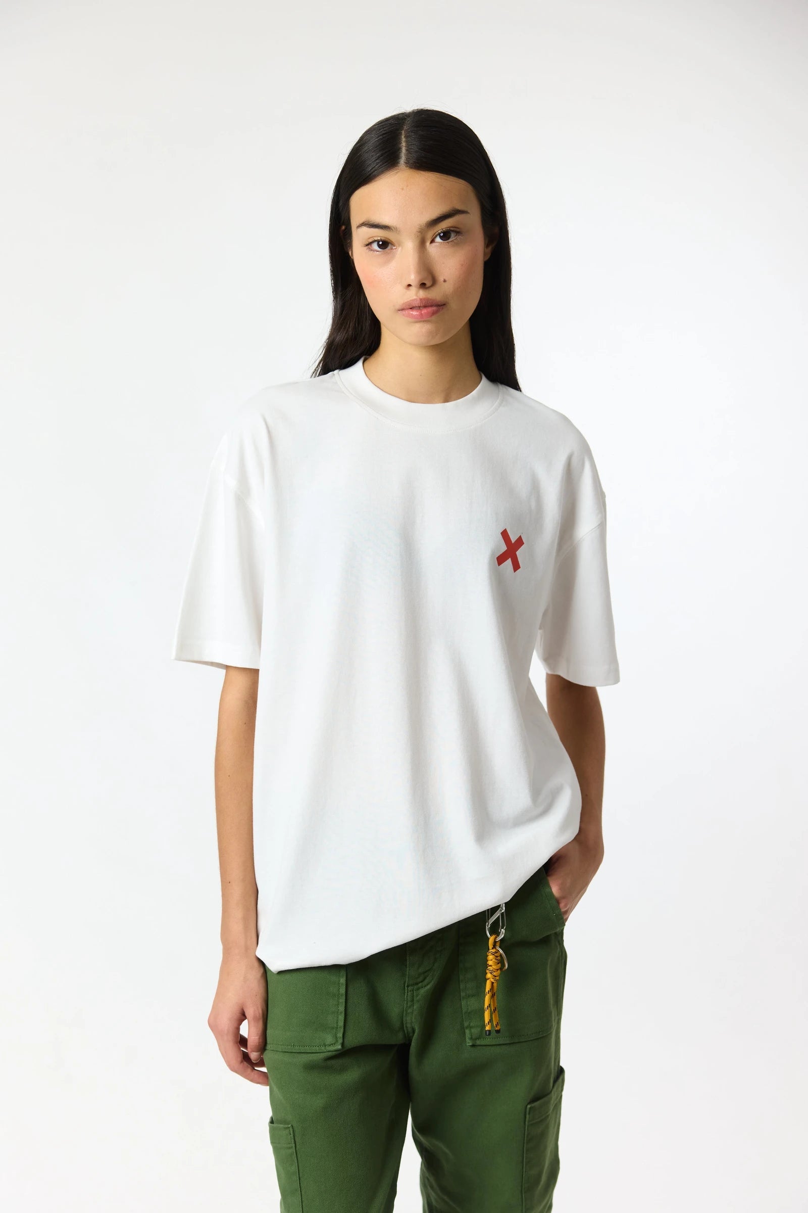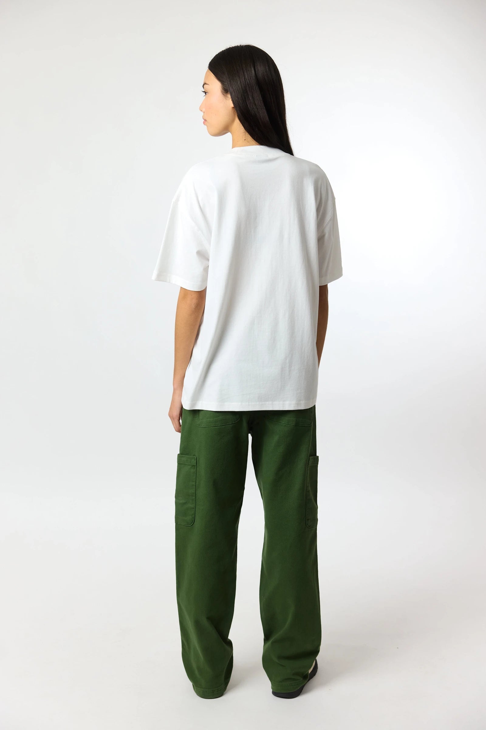 La White Amsterdam Tee de Blue Banana es una camiseta de corte oversize, confeccionada en 100 % algodón orgánico, que aporta suavidad, durabilidad y un enfoque sostenible. Su estampado frontal añade carácter al diseño limpio y la silueta amplia refuerza una estética urbana relajada. El color blanco permite gran versatilidad, combinando con denim, cargos o pantalones de tiro alto.