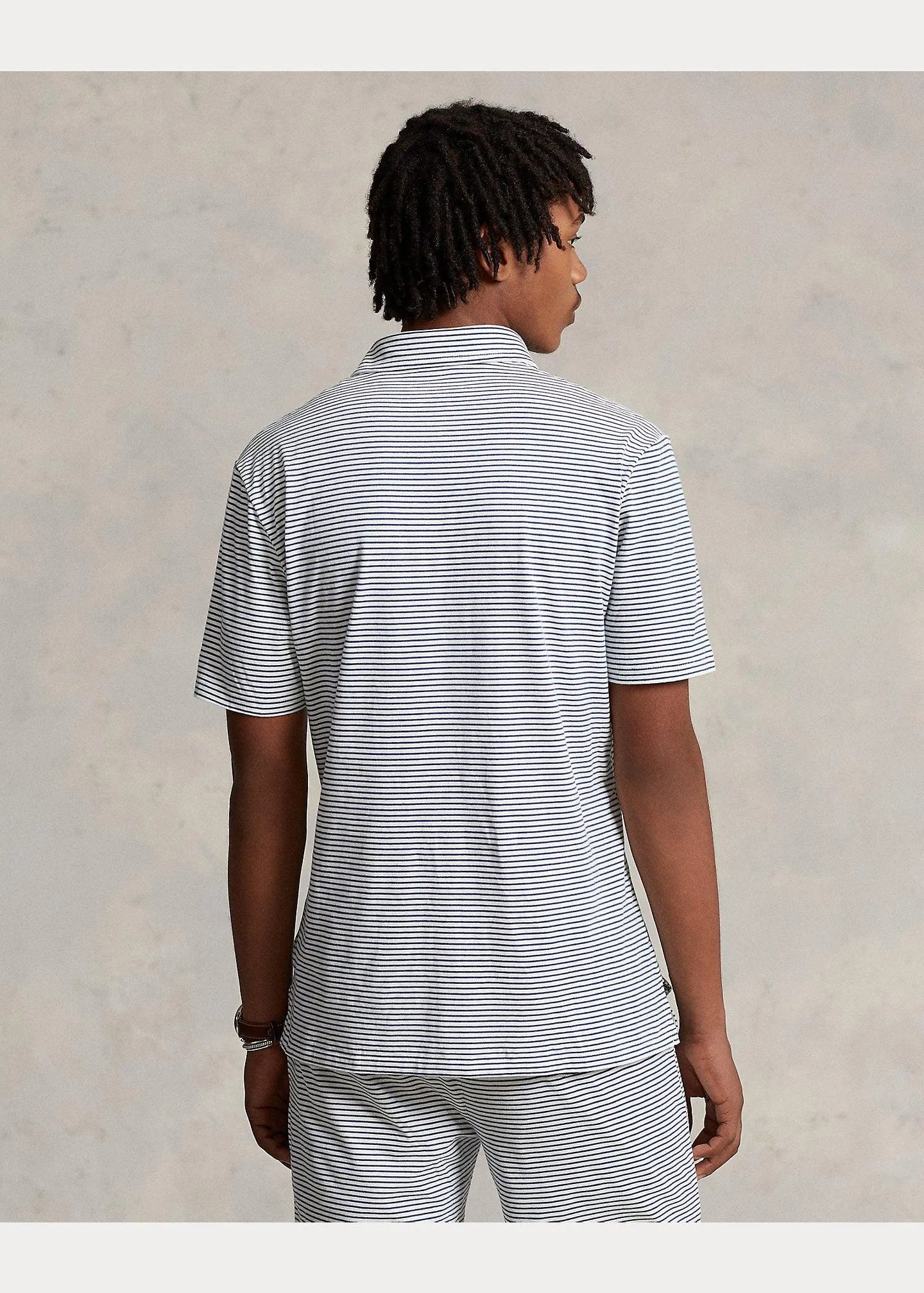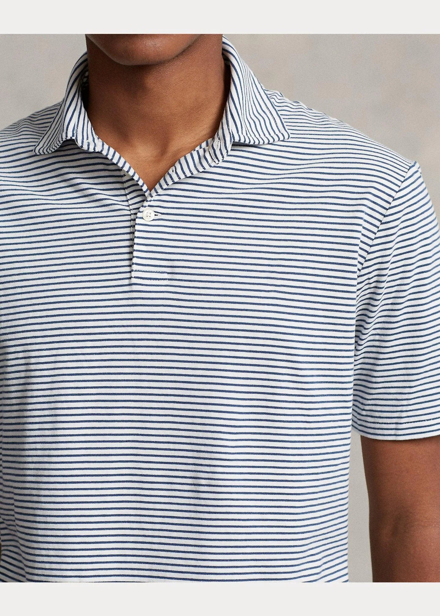 An icon of American style since 1972, the polo shirt has had numerous imitators, but none has managed to match it. Throughout these decades, Ralph Lauren has reinterpreted its signature style with a wide range of colors and fits, while always retaining the quality and attention to detail of the iconic original. This striped version is cut from brushed cotton jersey and finished with our signature horse embroidery to the hem.