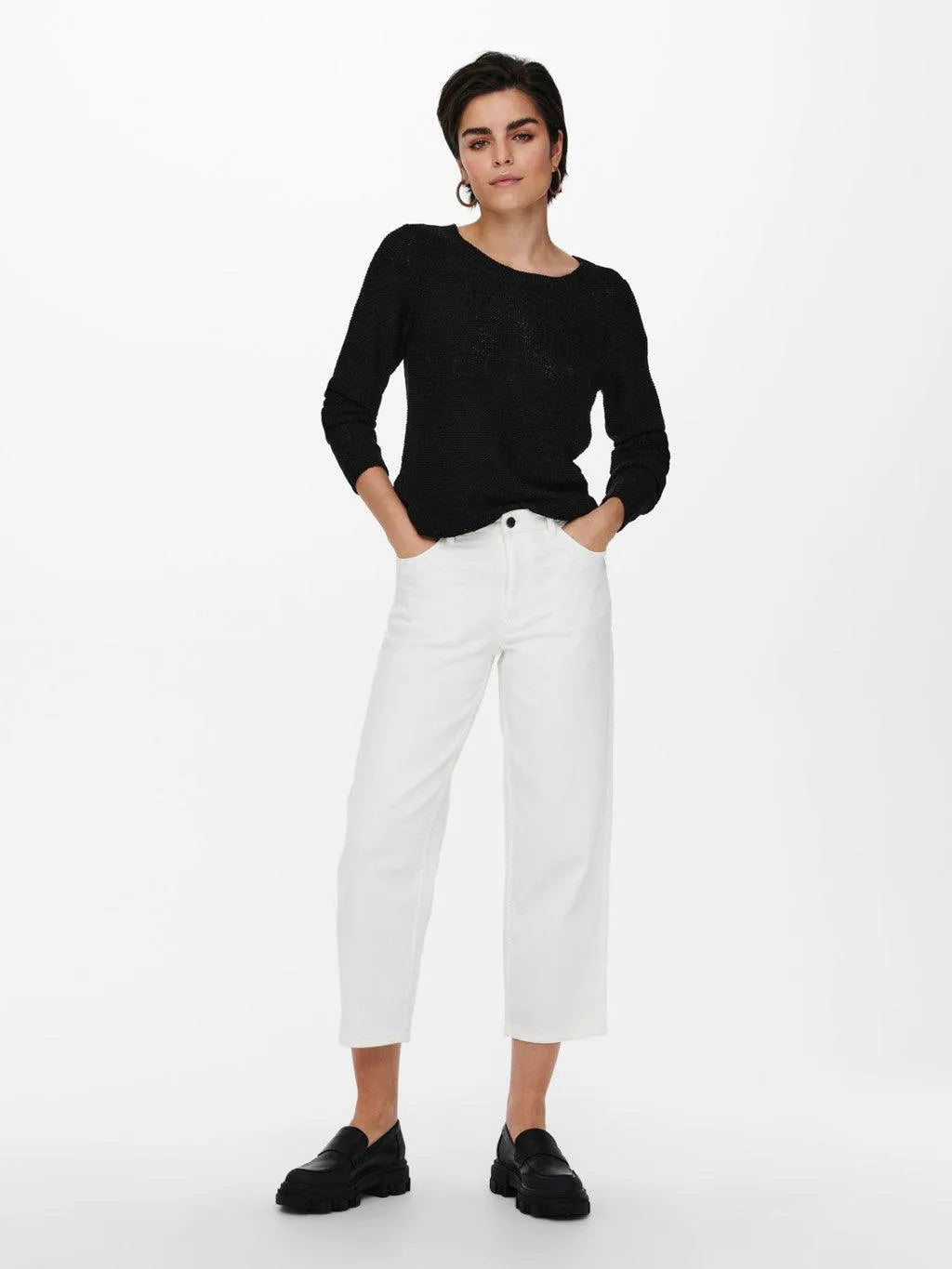 - Jumper. - Ribbed round neck. - The sweater is longer in the back. - Front length: 57cm in size M. - Back length: 64cm in size M. - The model is 1.74m tall and wears size S.