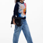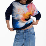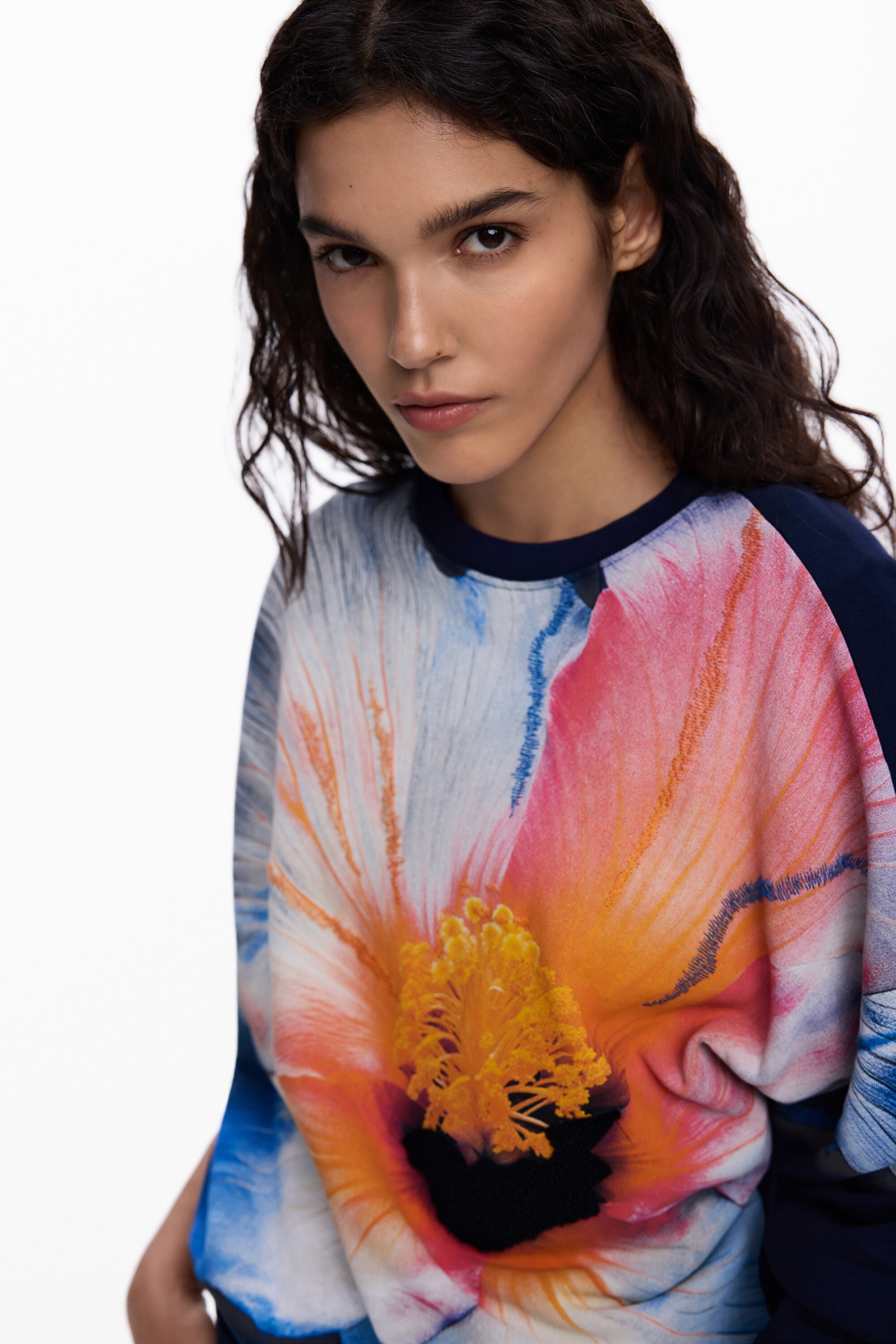 Sudadera de corte regular, con fondo liso, estampado de gran flor y logo Desigual bordado.