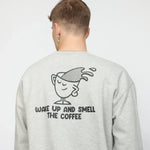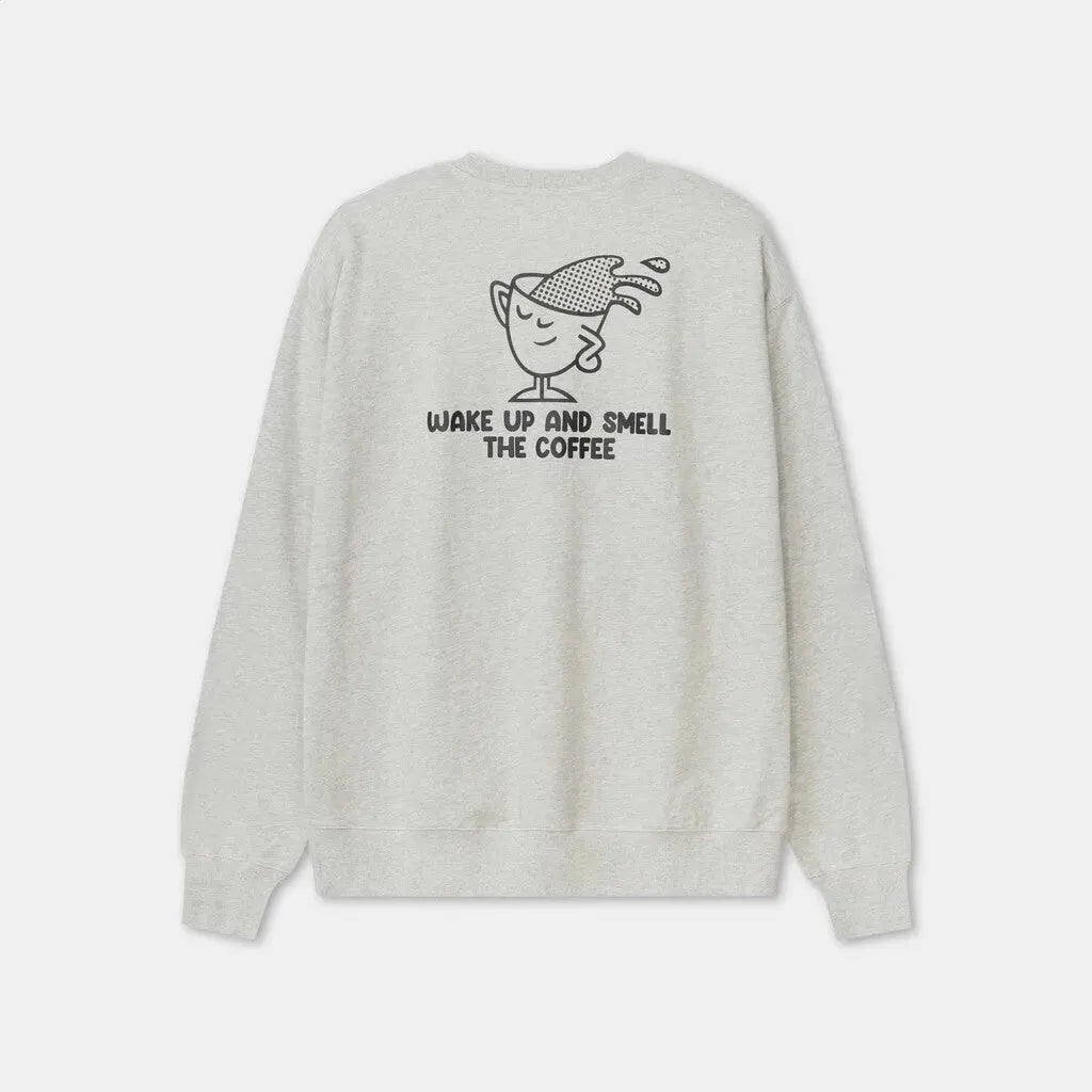 Loose-fitting crewneck sweatshirt with ribbed trims on the sleeves and hem, made from 420gsm organic cotton. This heavyweight, crisp-feel fabric ensures the sweatshirt's stability and durability. Organic cotton is grown from non-GMO seeds, without chemical fertilisers or pesticides, which improves biodiversity and has a lower impact on the ecological balance. The crewneck sweatshirt features a small text print on the chest, a large coloured print on the centre back and a brand label at the bottom.