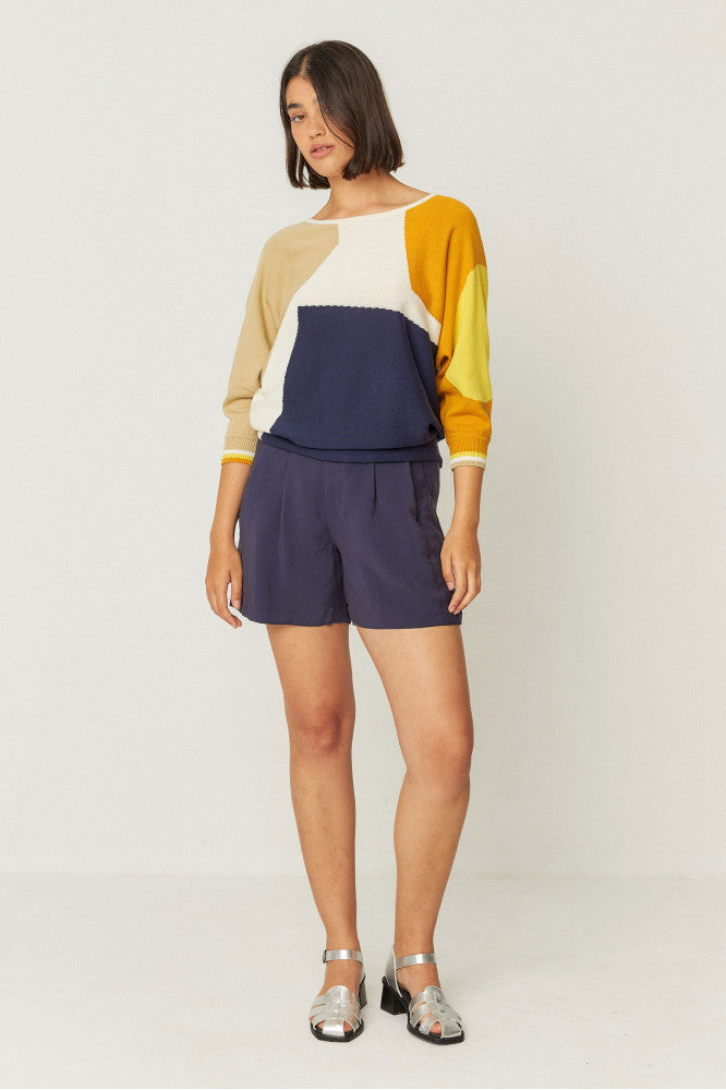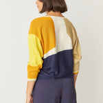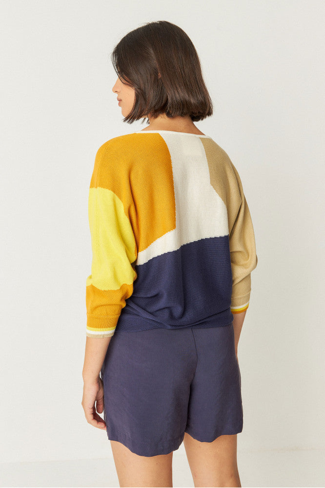 Organic cotton batwing-sleeve sweater with a round neck and ribbed trim at the sleeve ends.