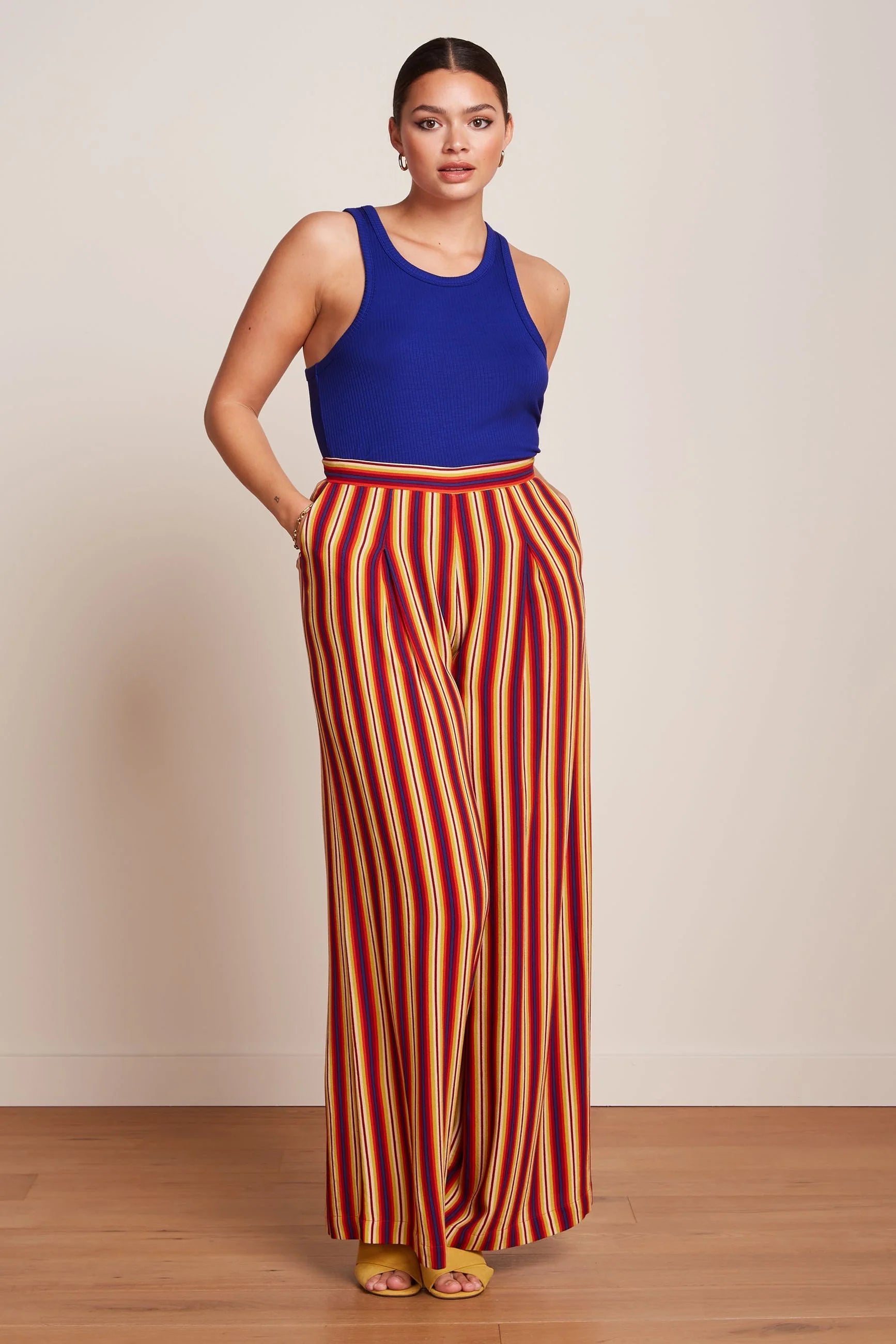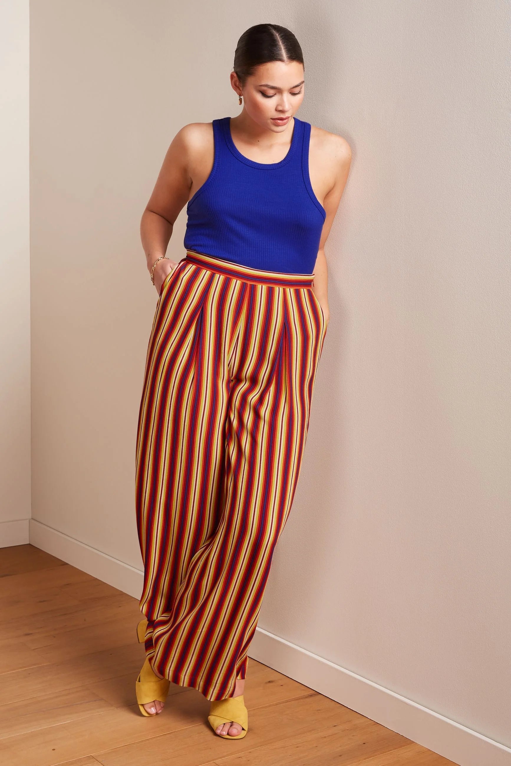 Elegant wide-leg trousers with flattering front pleats and practical side pockets.