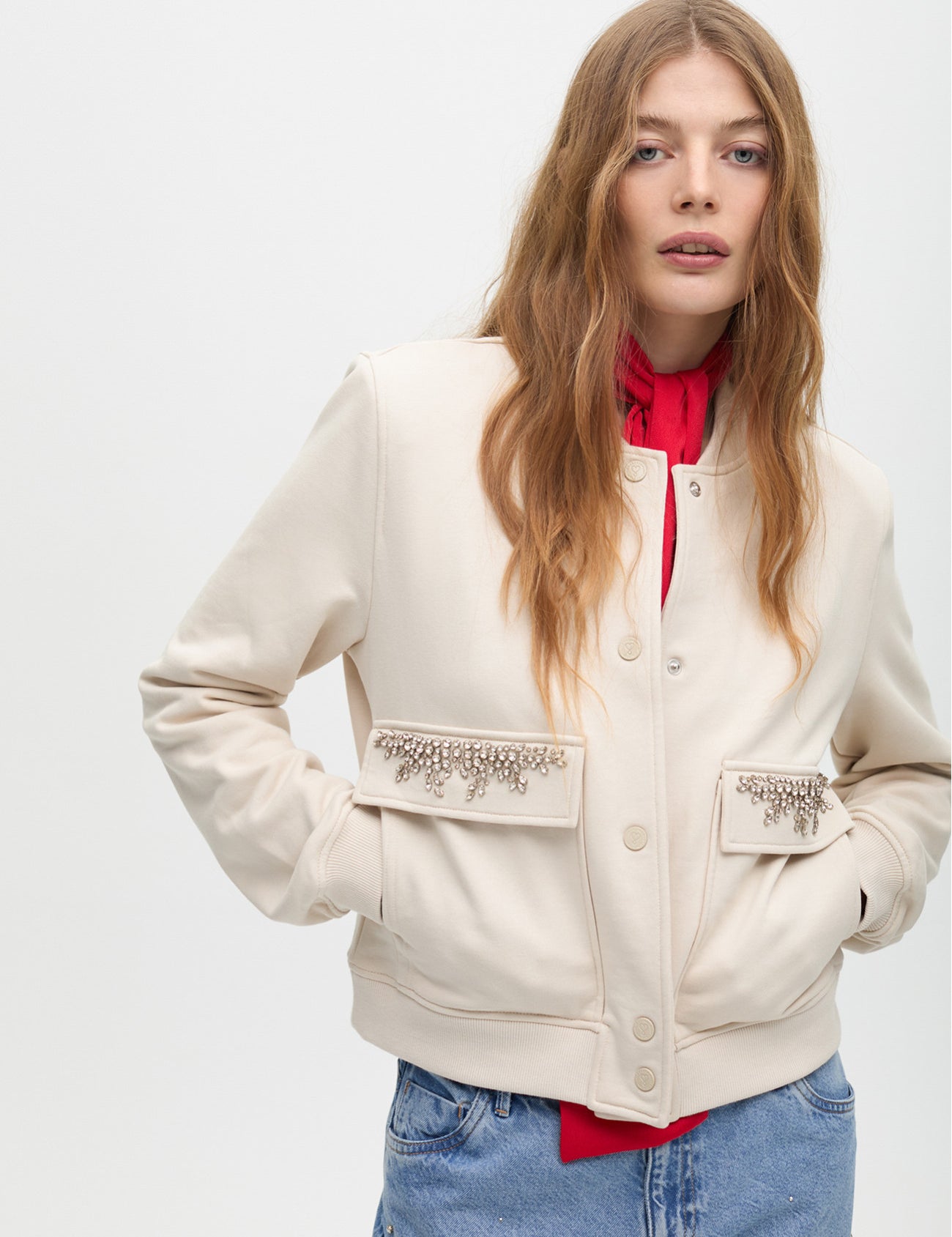 Bomber LOLA CASADEMUNT Detalle Bolsillos Joya Piedra
