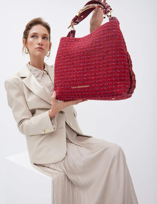 Bolso LOLA CASADEMUNT Tejido Tweed Rojo