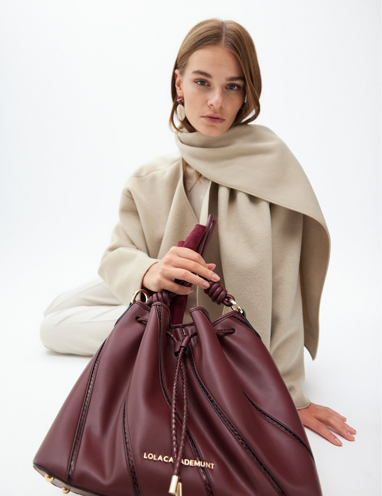 Bolso LOLA CASADEMUNT Judas Piezas y Detalles en Efecto Piel Serpiente Burdeos