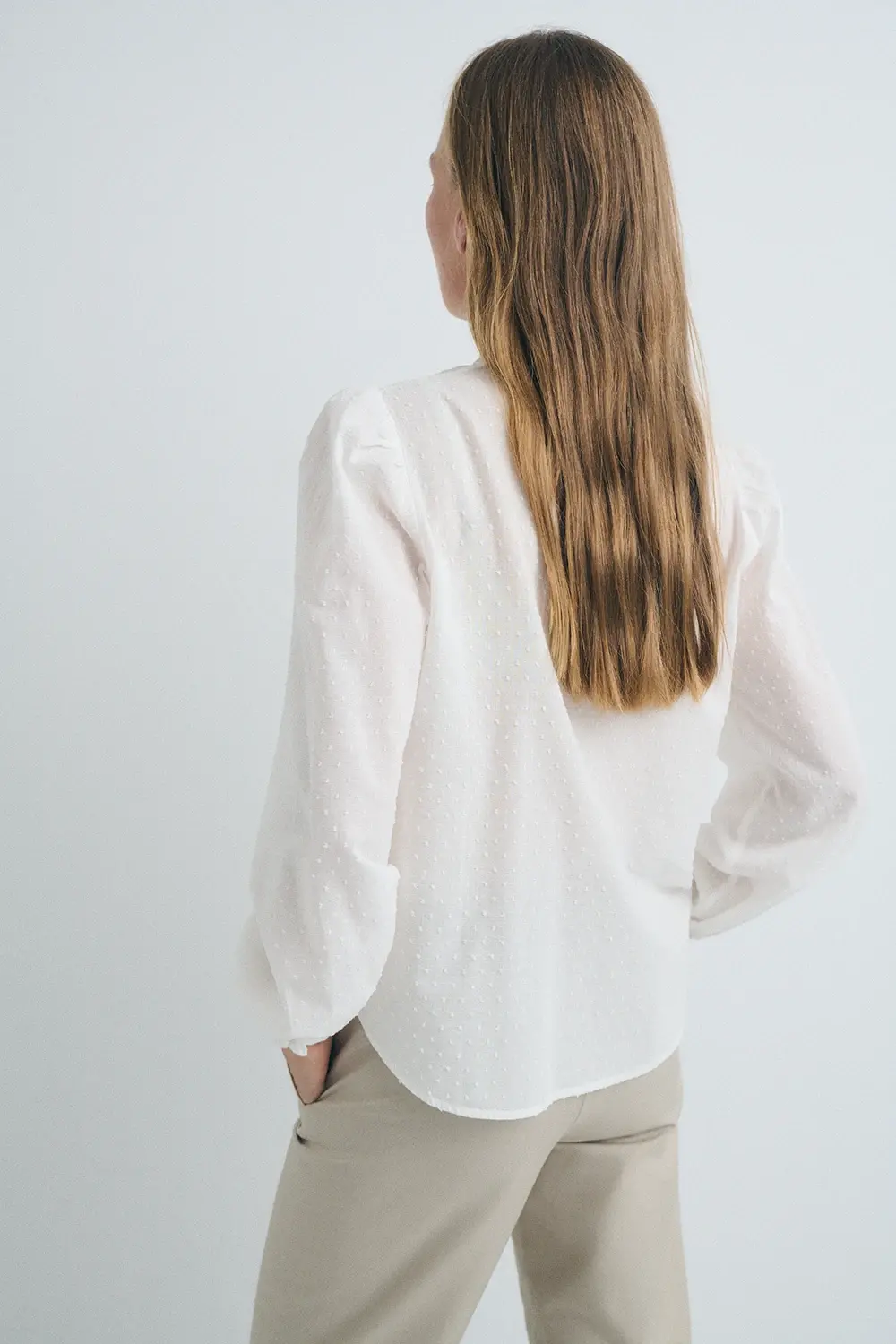 • Tejido: plumetti de algodón semitransparente
