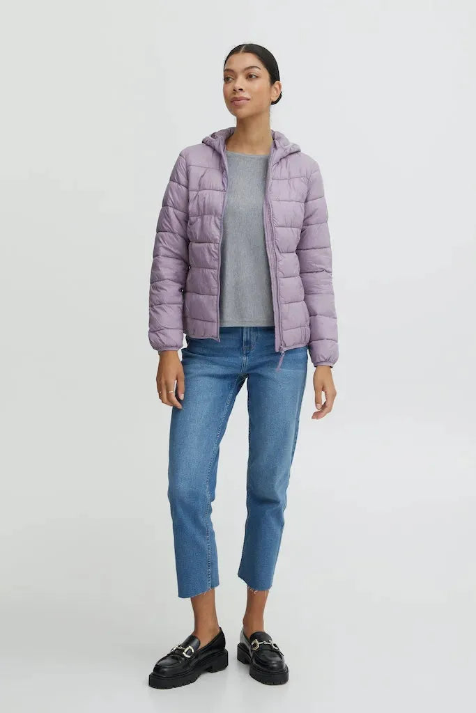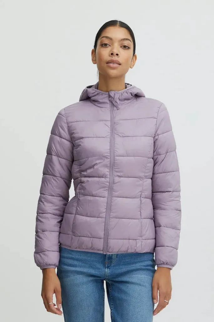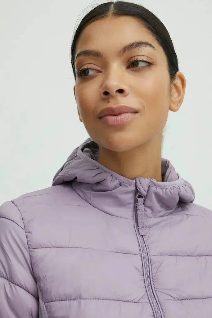 Slim fit jacket with hood. Visible zip fastening. Side pockets with concealed zip fastening. Elasticated trim on hood, sleeves and hem. Quilted woven quality. It is recommended to choose a size larger than usual.
