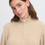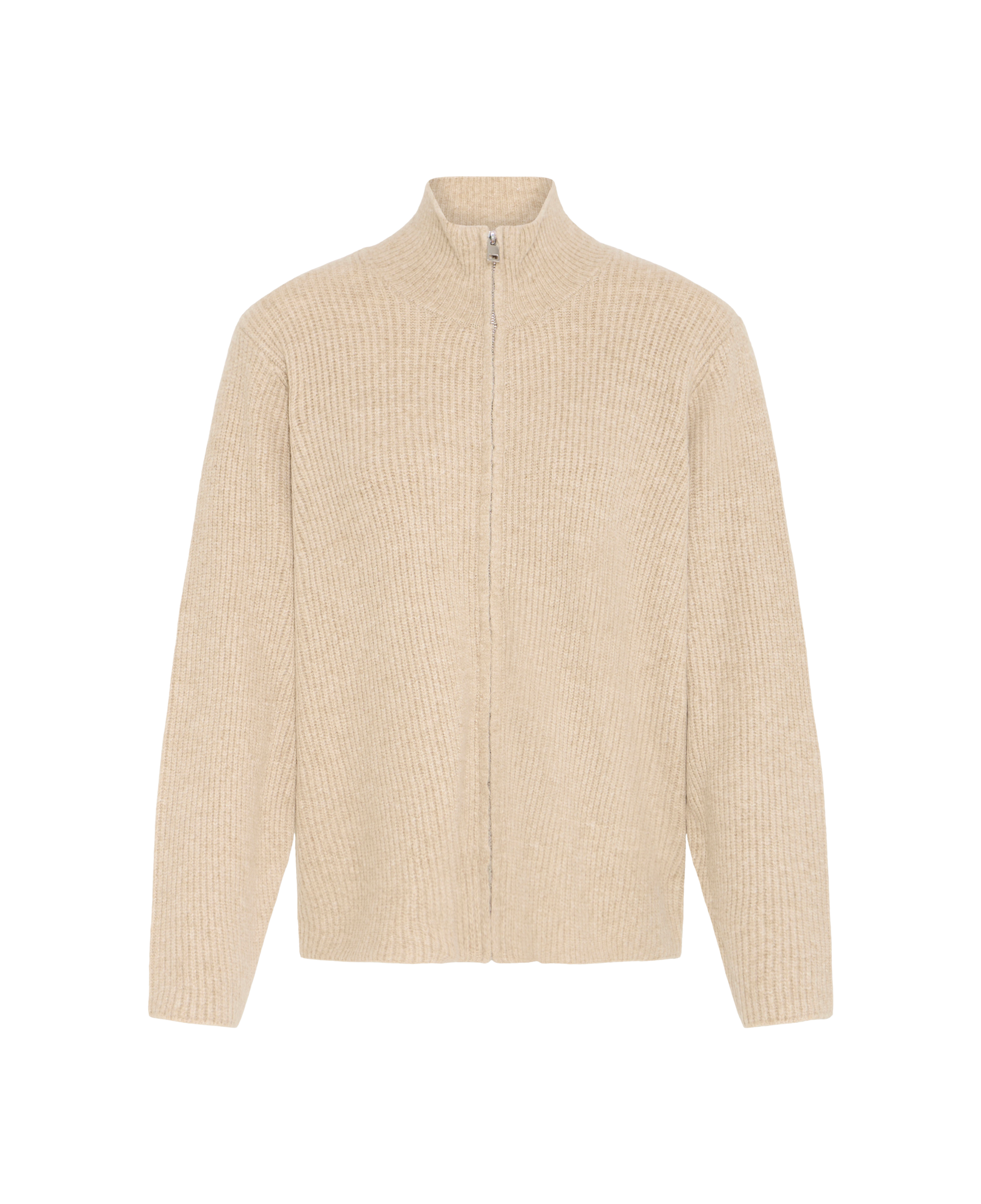 This women's zip-up jacket offers a relaxed fit and a high collar for comfort and versatility. The long sleeves and soft texture ensure freedom of movement, making it ideal for layering with other pieces in everyday outfits.