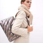 Bolso LOLA CASADEMUNT con Solapa en Tejido Acolchado Metalizado