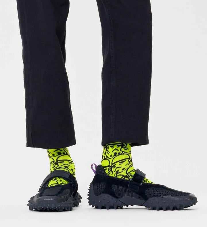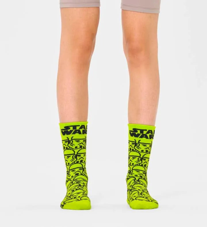 Get some galactic socks featuring a clone army of Stormtroopers on a neon yellow background. It's time to march together!