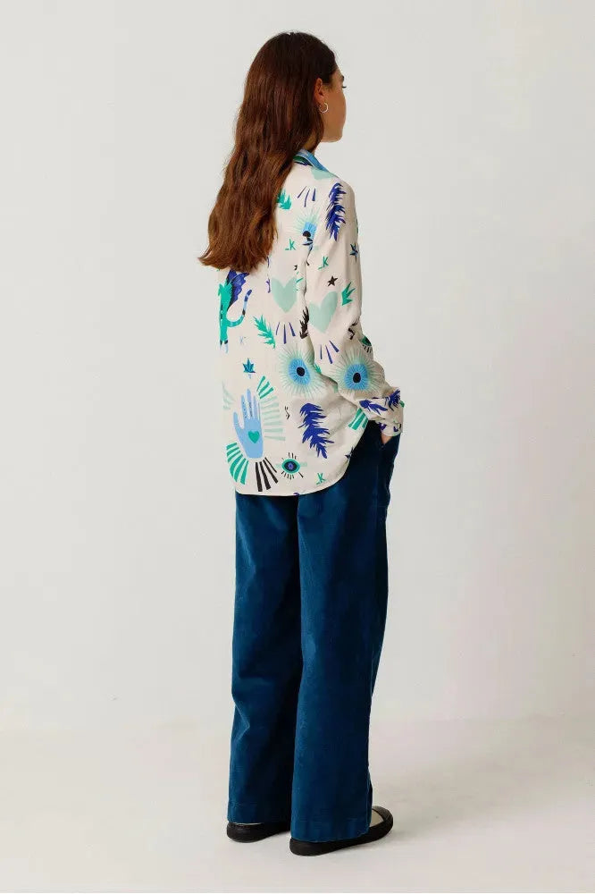 Straight-cut printed shirt with a shirt collar, long sleeves and buttoned cuffs, with a unique look and easy-to-button front closure.