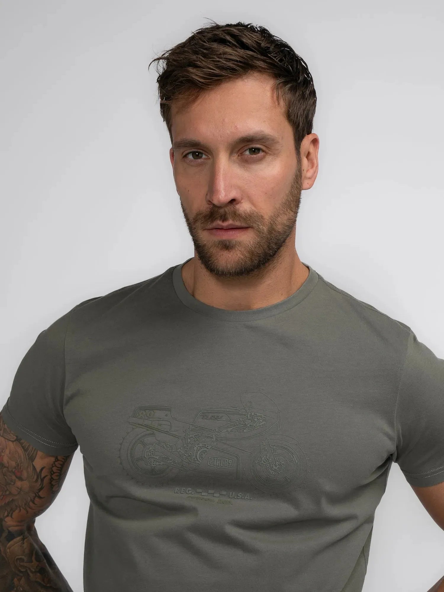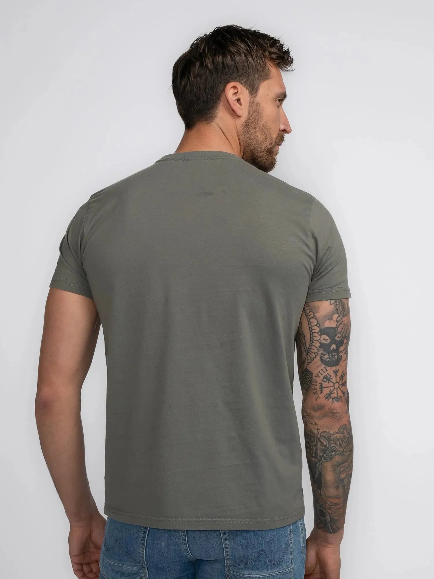 Crew neck t-shirt with short sleeves. This t-shirt features artwork on the chest. Made from 100% cotton.