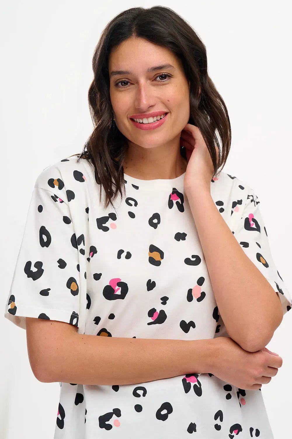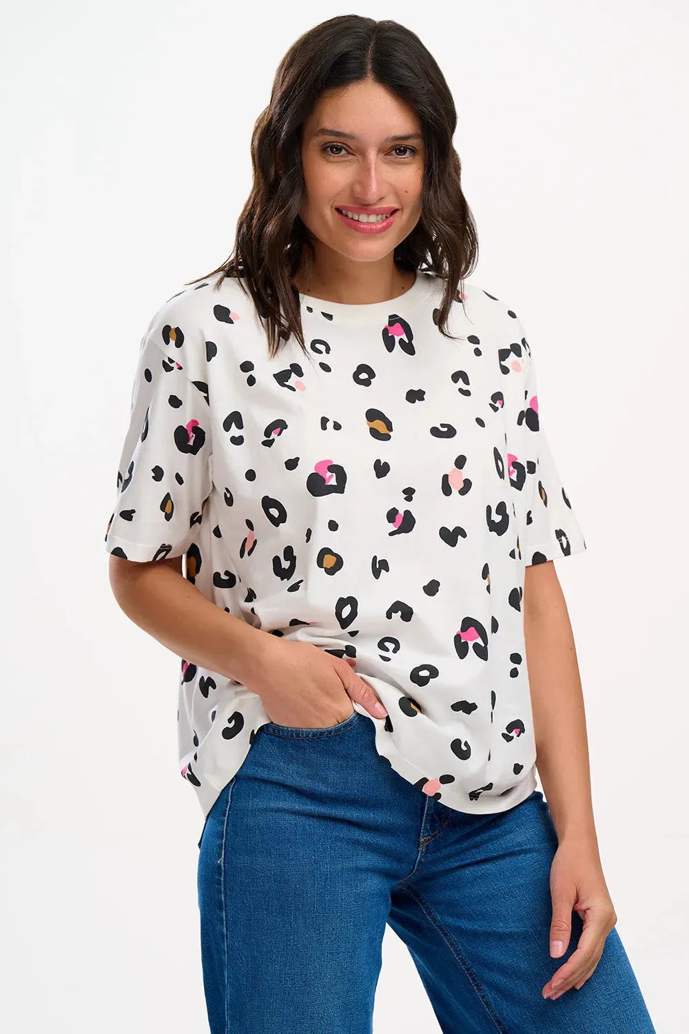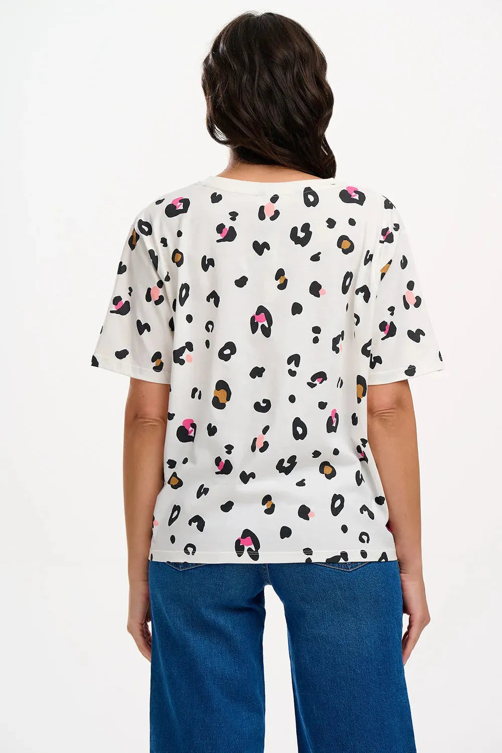SUGARHILL Kinsley Off White Color Pop Leopard T-shirt