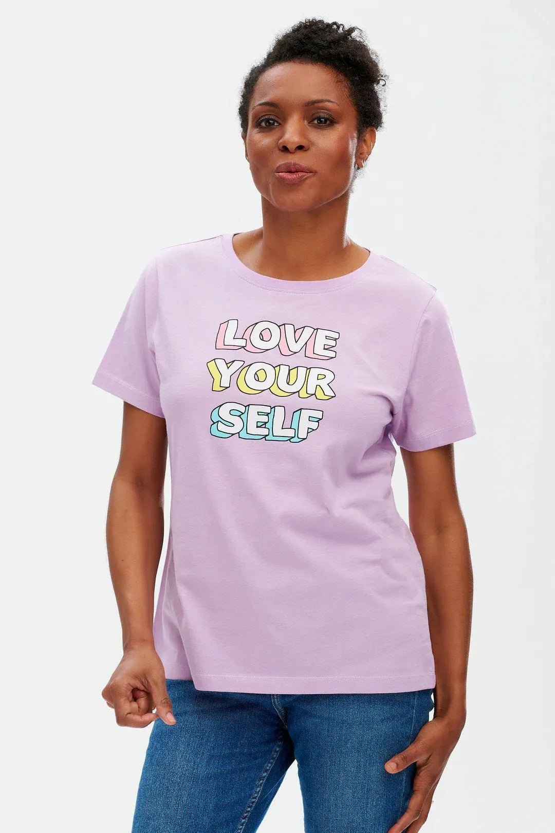 We've updated our best-selling t-shirt design, the Maggie has straight side seams and a straight back for a classic fit. We love the retro typography on a bright yellow base, but it's the soft 100% organic cotton base that makes this tee extra special.