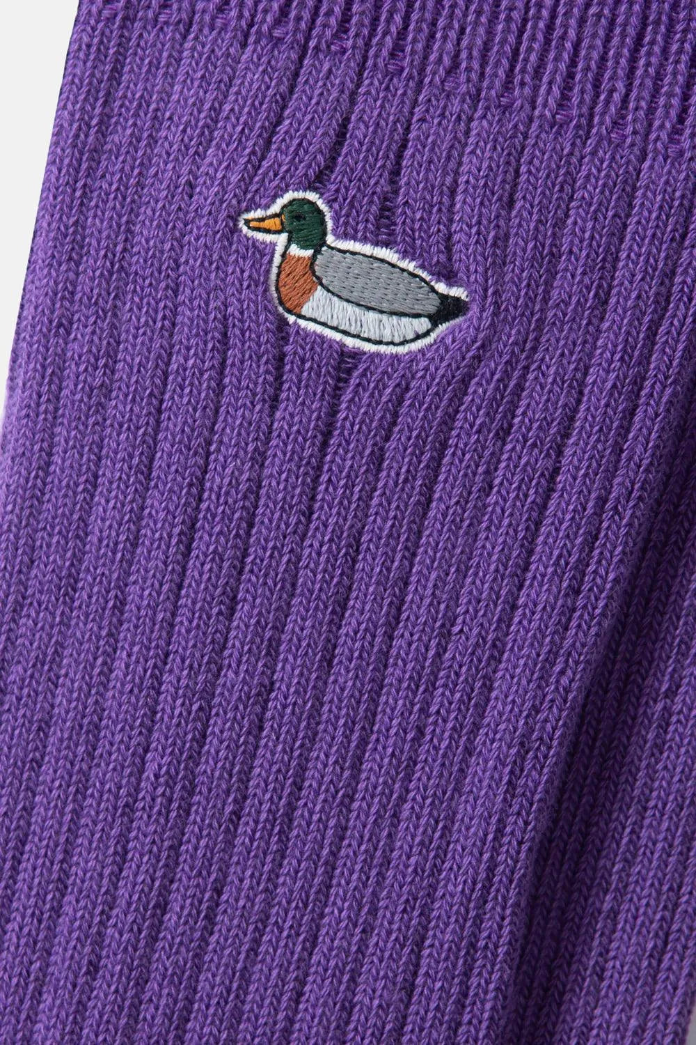 Purple cotton socks. With light elastic support and finished with the embroidered duck logo.