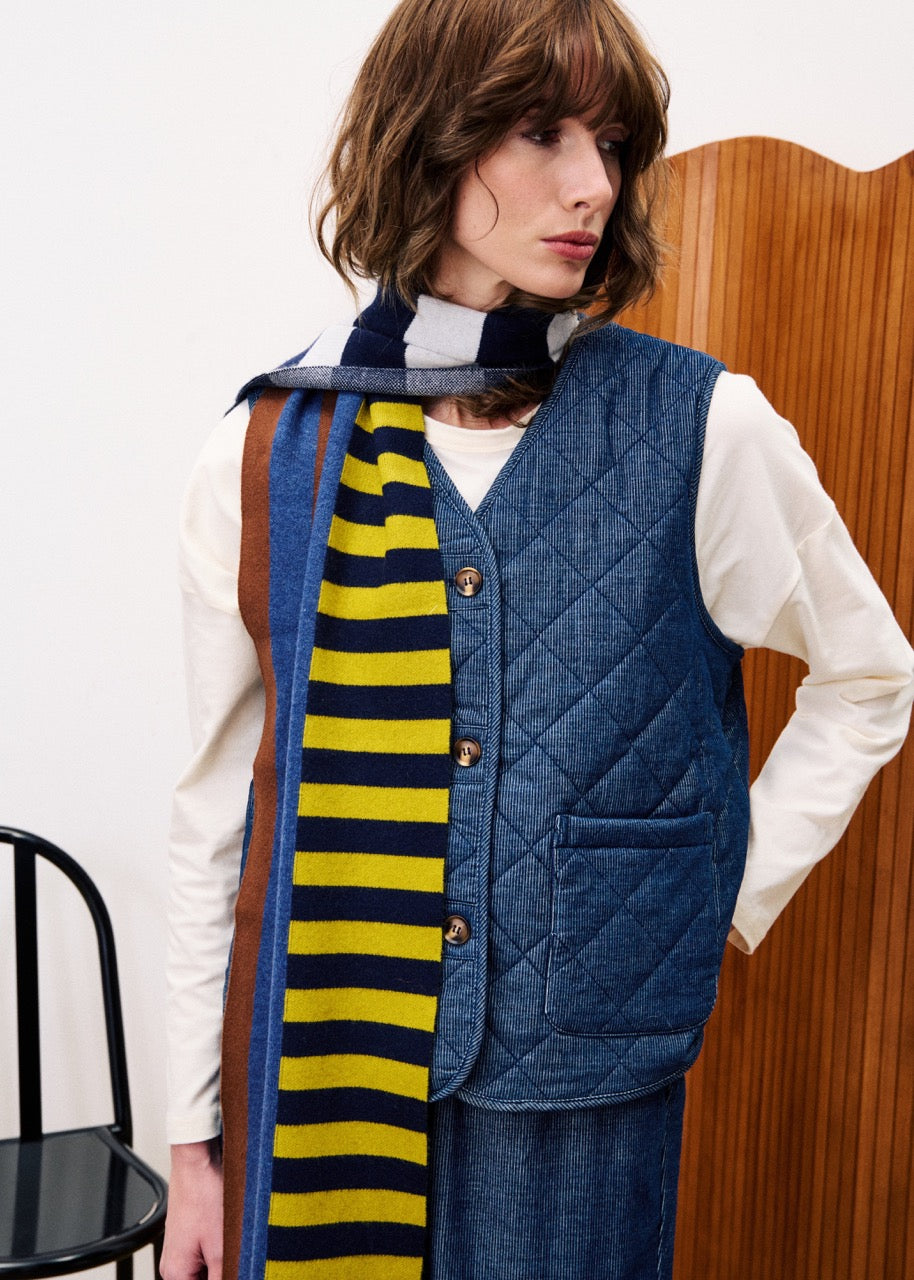 • Chaleco sin mangas acolchado a rayas.