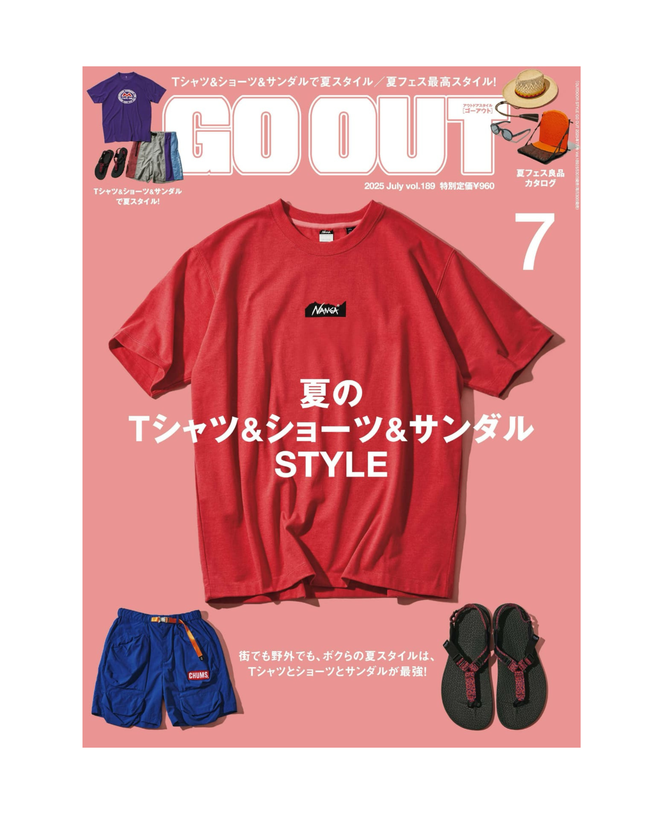 GO OUT vol. 189, July issue, "Summer Style with T-shirts, Shorts, and Sandals." We've rounded up a wide variety of this season's best pieces: T-shirts, shorts, and sandals, which are essential for our summer style. Also, don't miss the functional outfits and practical items for the upcoming summer festival season.