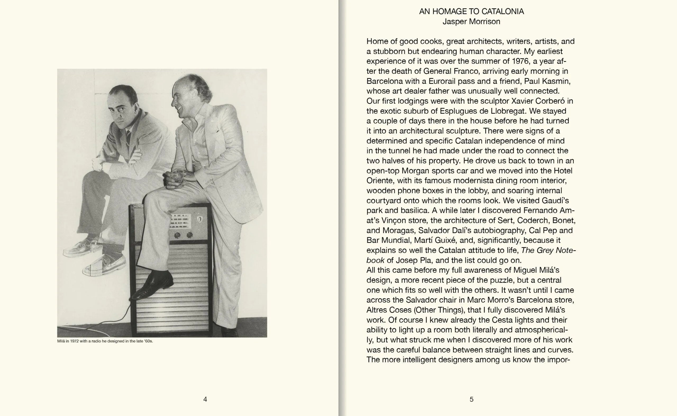 Miguel Milá: A Life in Design is a detailed tour of his most emblematic works, made between 1956 and 2021, with archive photographs and drawings, as well as original photographs taken at the Milá house in Barcelona by Nacho Alegre. Seminal English designer Jasper Morrison introduces the book, while the products are cataloged and described by design academic Francisco Gaspar Quevedo, who also contributed a biographical text on Miguel's life, career and principles.