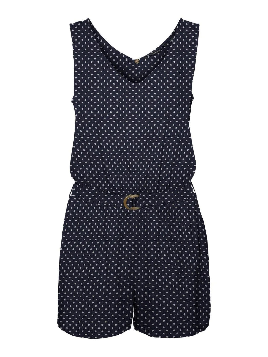 - Jumpsuit with horn ring belt.