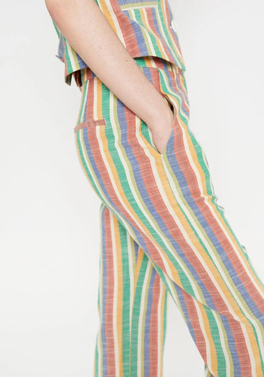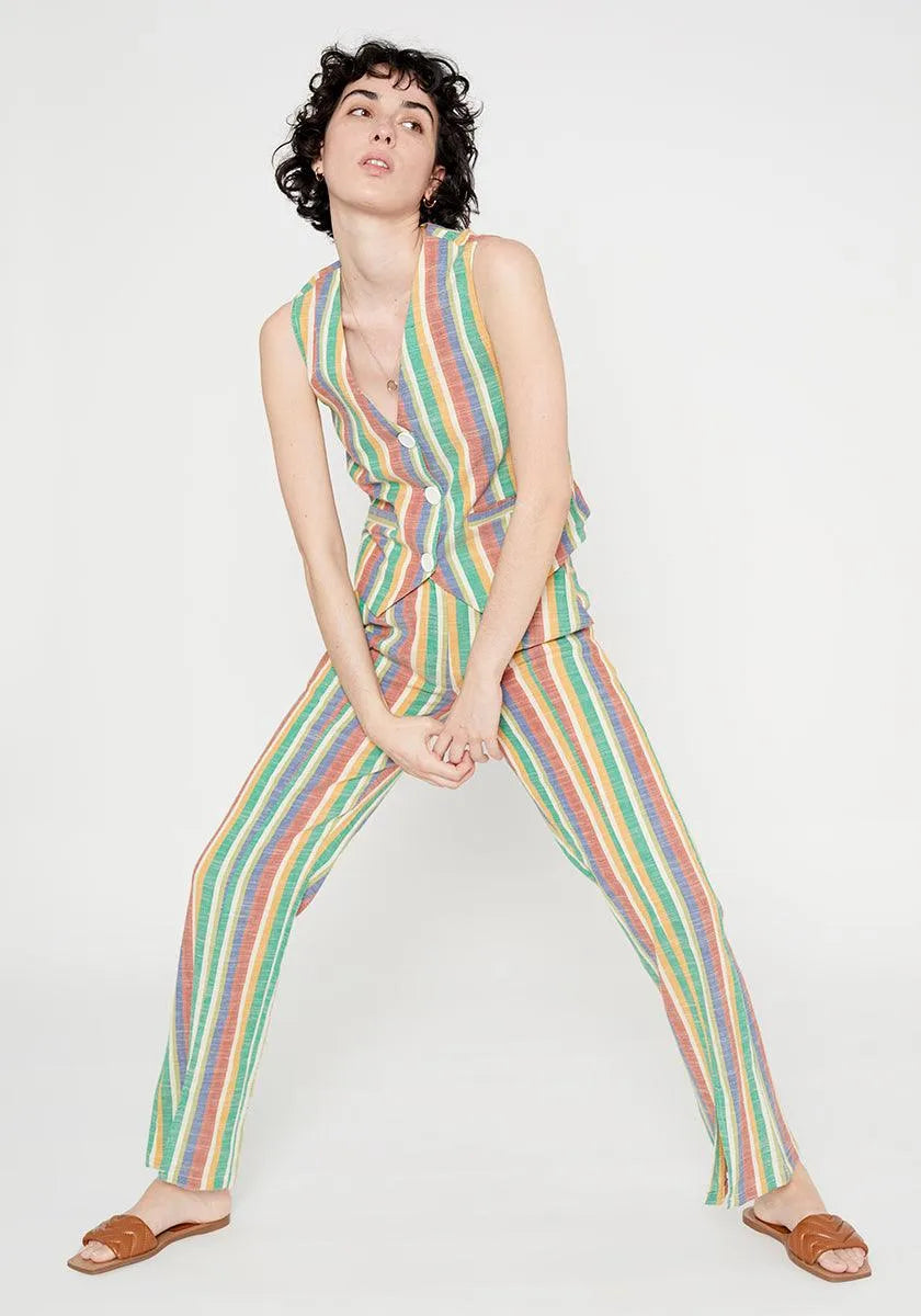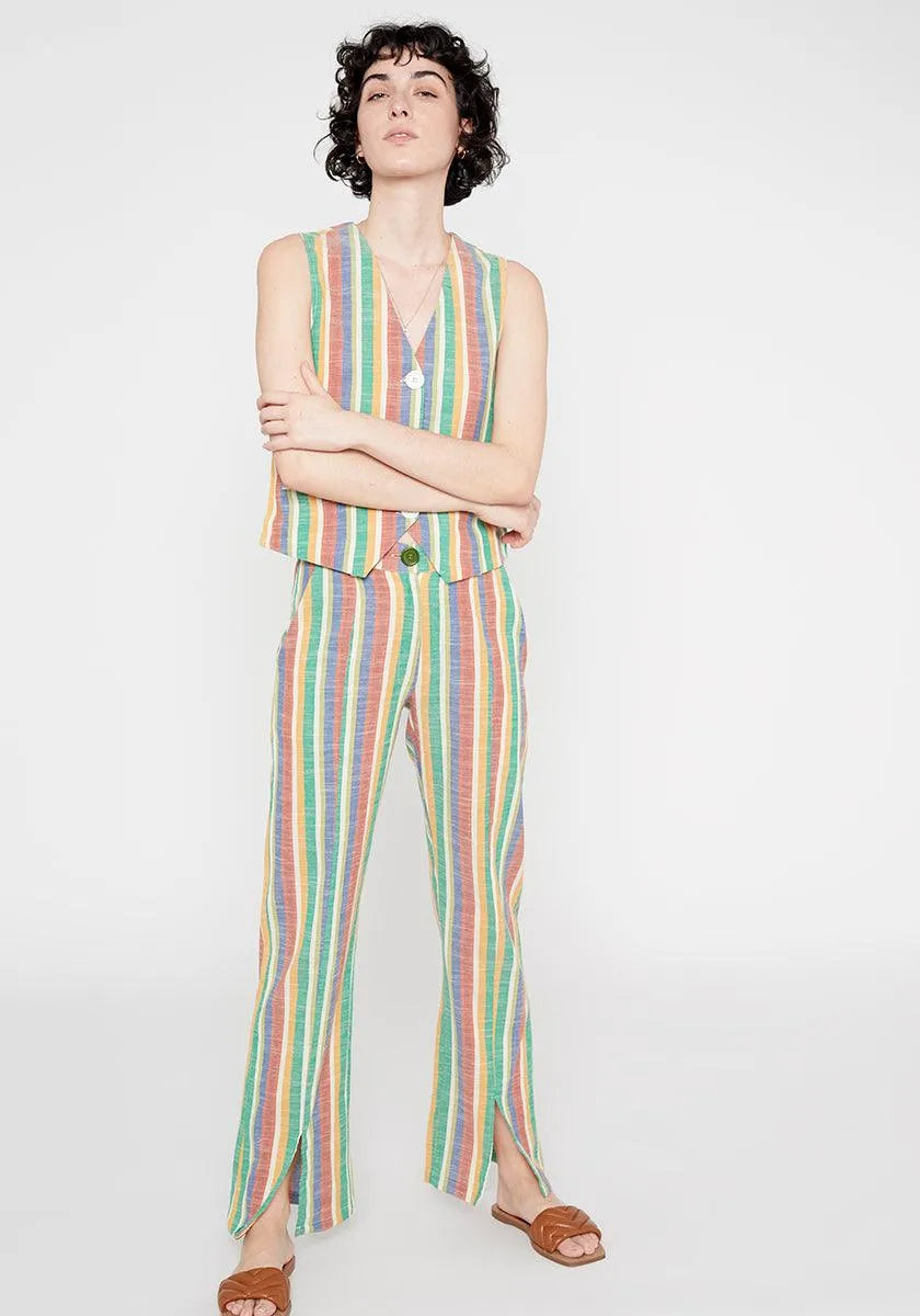 Striped front slit mid-rise straight trousers