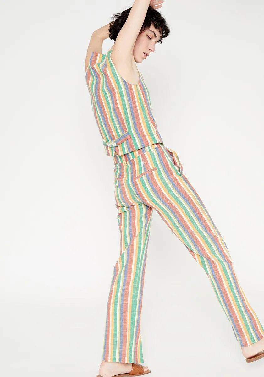 Pantalón recto de tiro medio aberturas frontales a rayas - ECRU