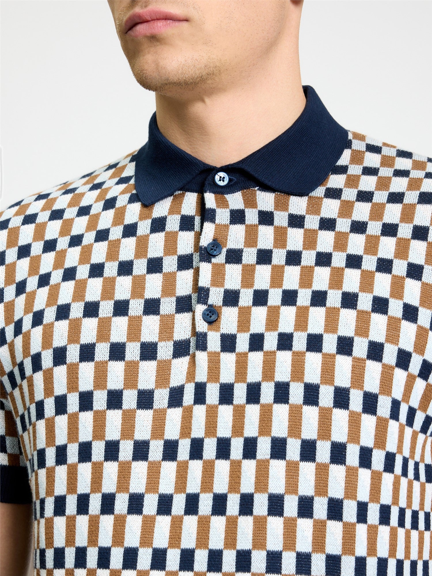 El tejido de punto jacquard aporta textura en toda la superficie, generando una sensación más rica y estructurada frente a un polo liso convencional.