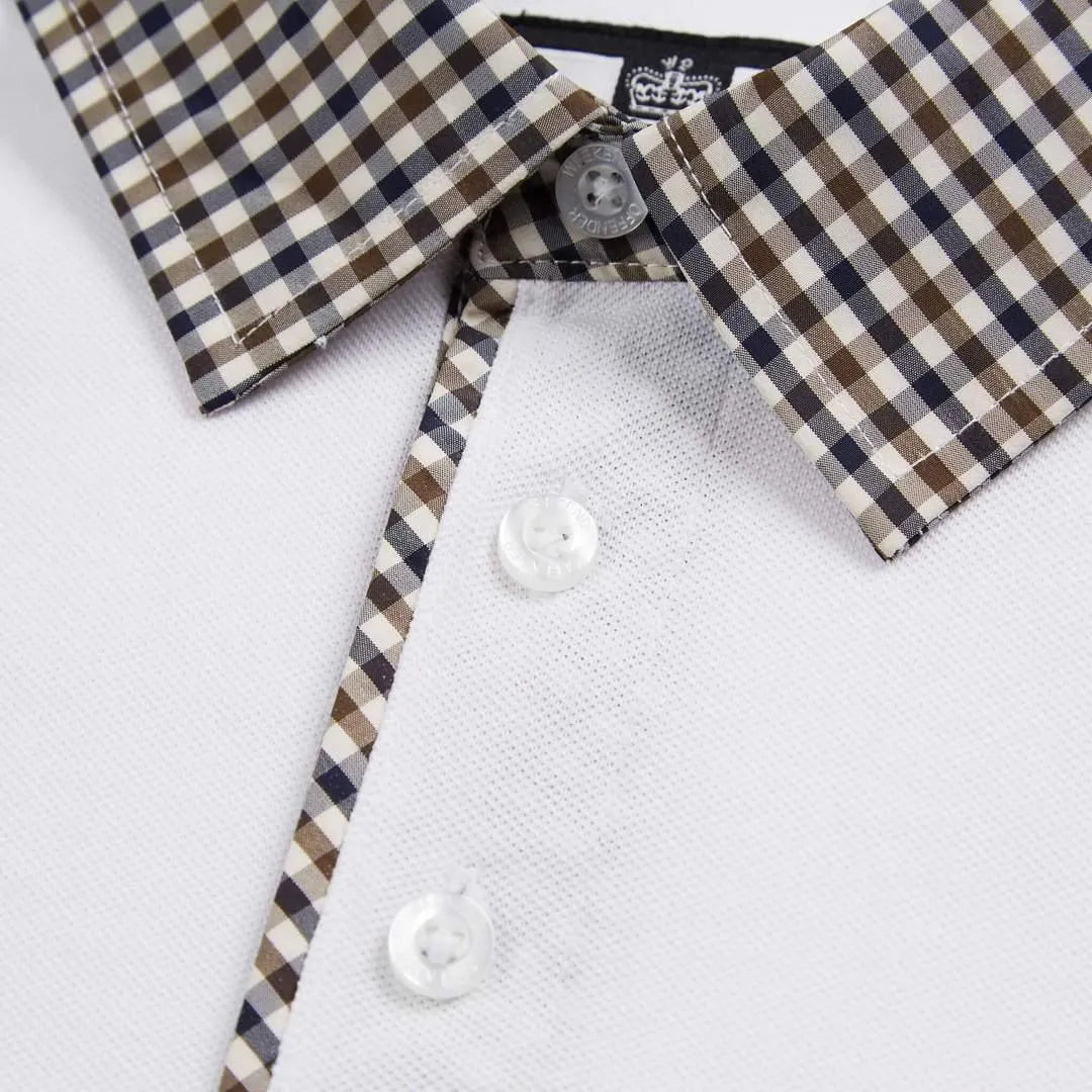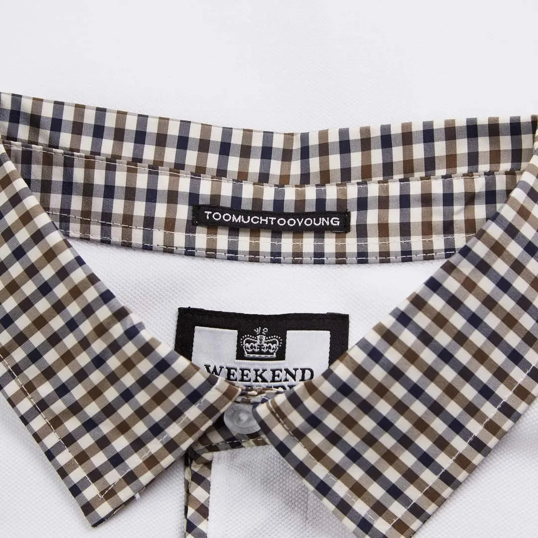 ▪ Nylon plaid trim on shoulders and placket, with rigid plaid collar for smart casual events