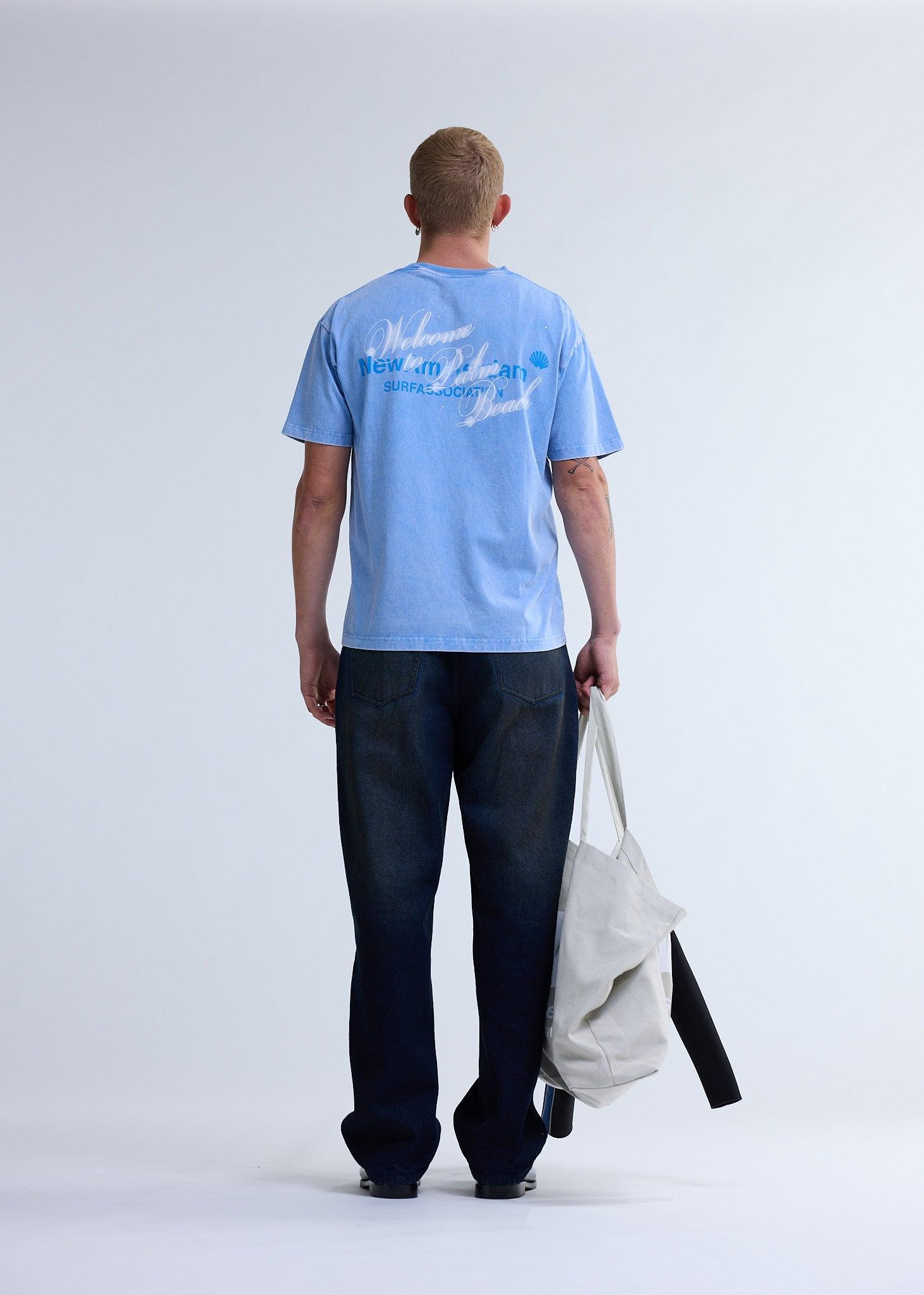 La Welcome To Palmbeach Tee Blue de New Amsterdam Surf Association es una camiseta gráfica de estética urbana y espíritu veraniego reinterpretado desde una mirada contemporánea. Diseñada con un enfoque relajado pero cuidado, combina referencias costeras con el carácter cultural y minimalista propio de la marca.