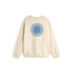 Sudadera cruda sol azul espalda Leon hecha de algodón orgánico