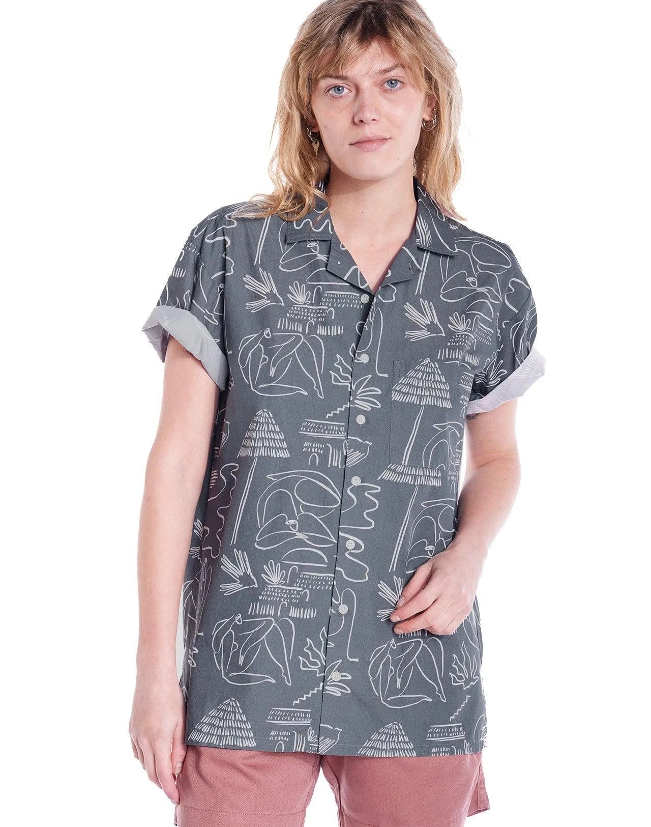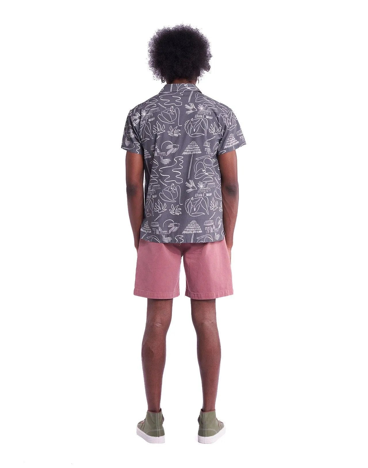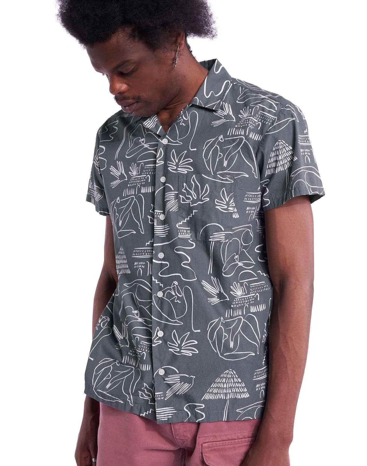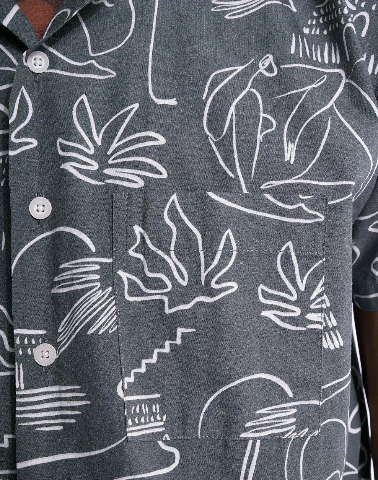 Shirt with all-over print and chest pocket. Hawaiian cut.