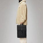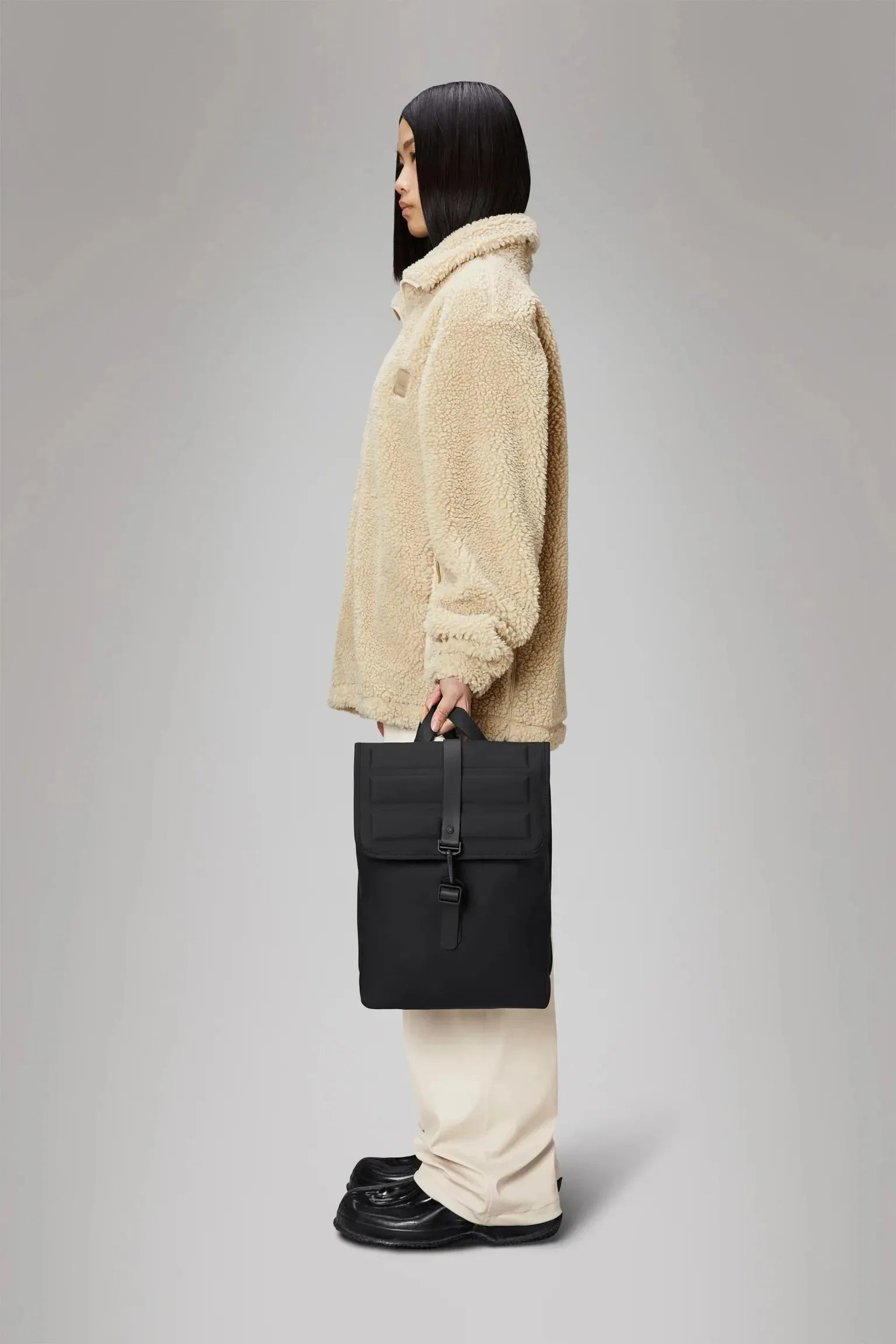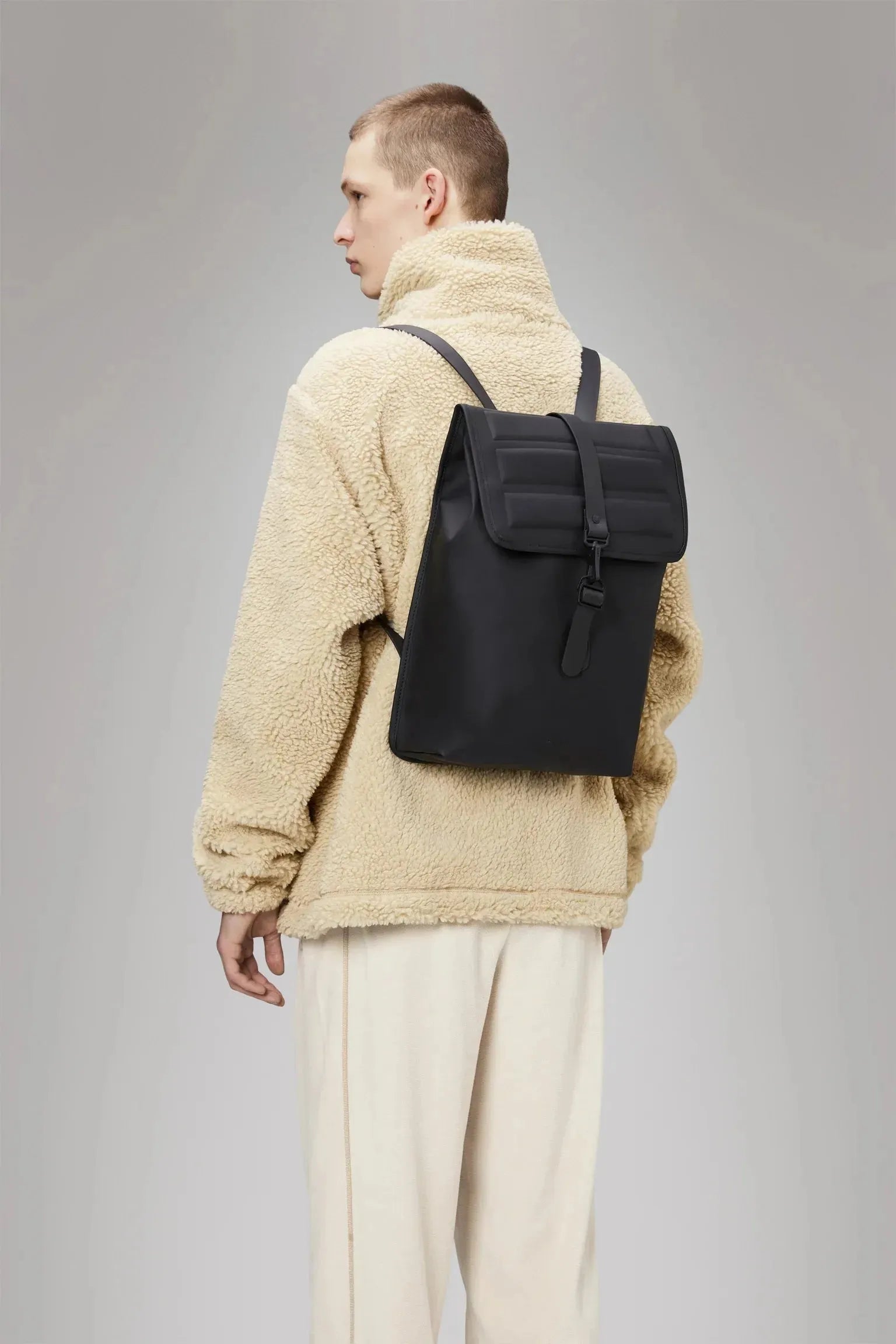 Puffed Backpack Micro is constructed from Rains' signature waterproof PU fabric, created for rugged carrying, durability and a smooth finish.
