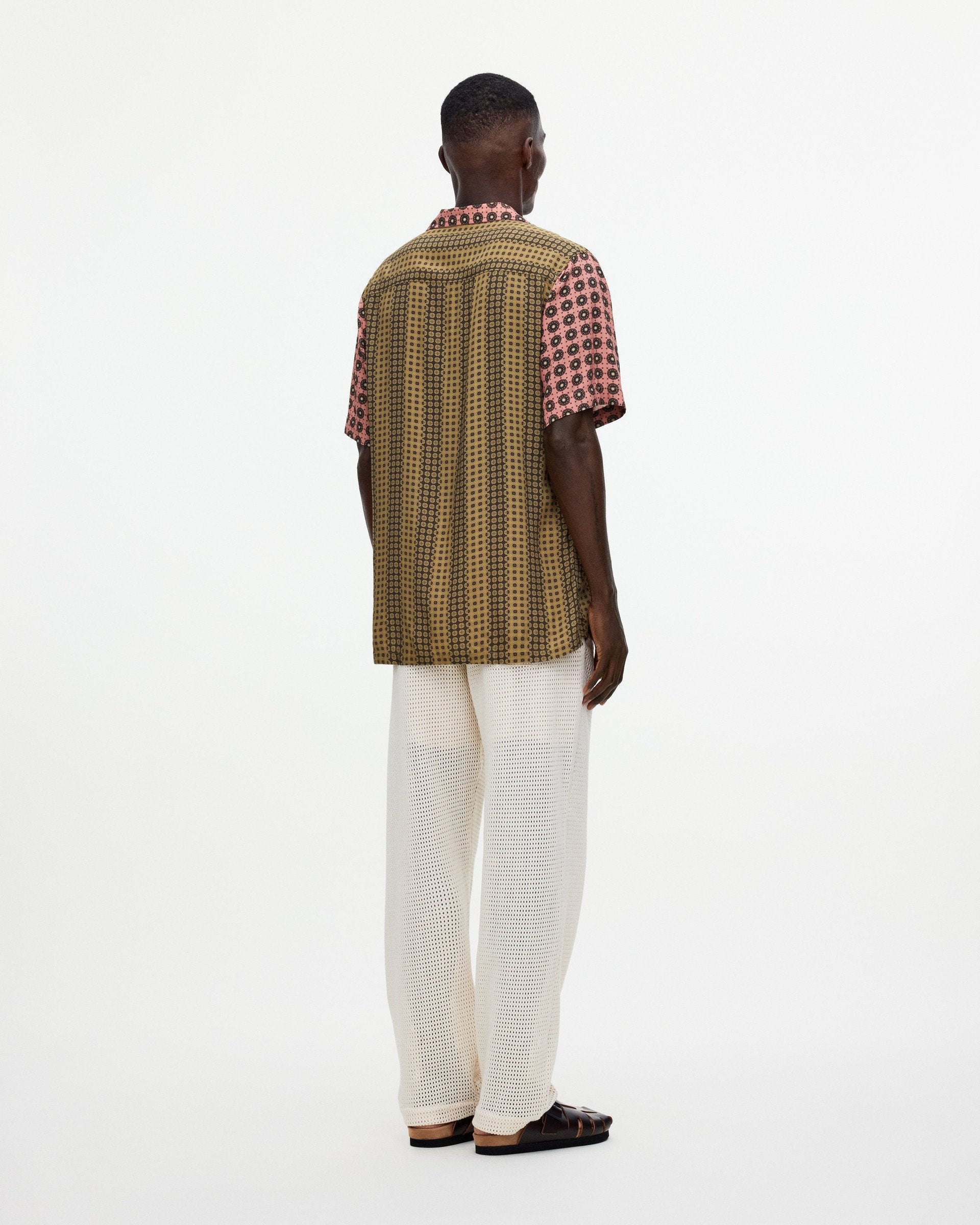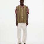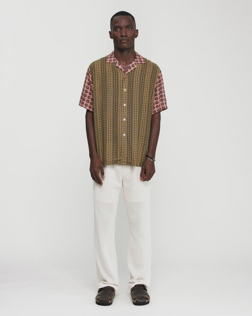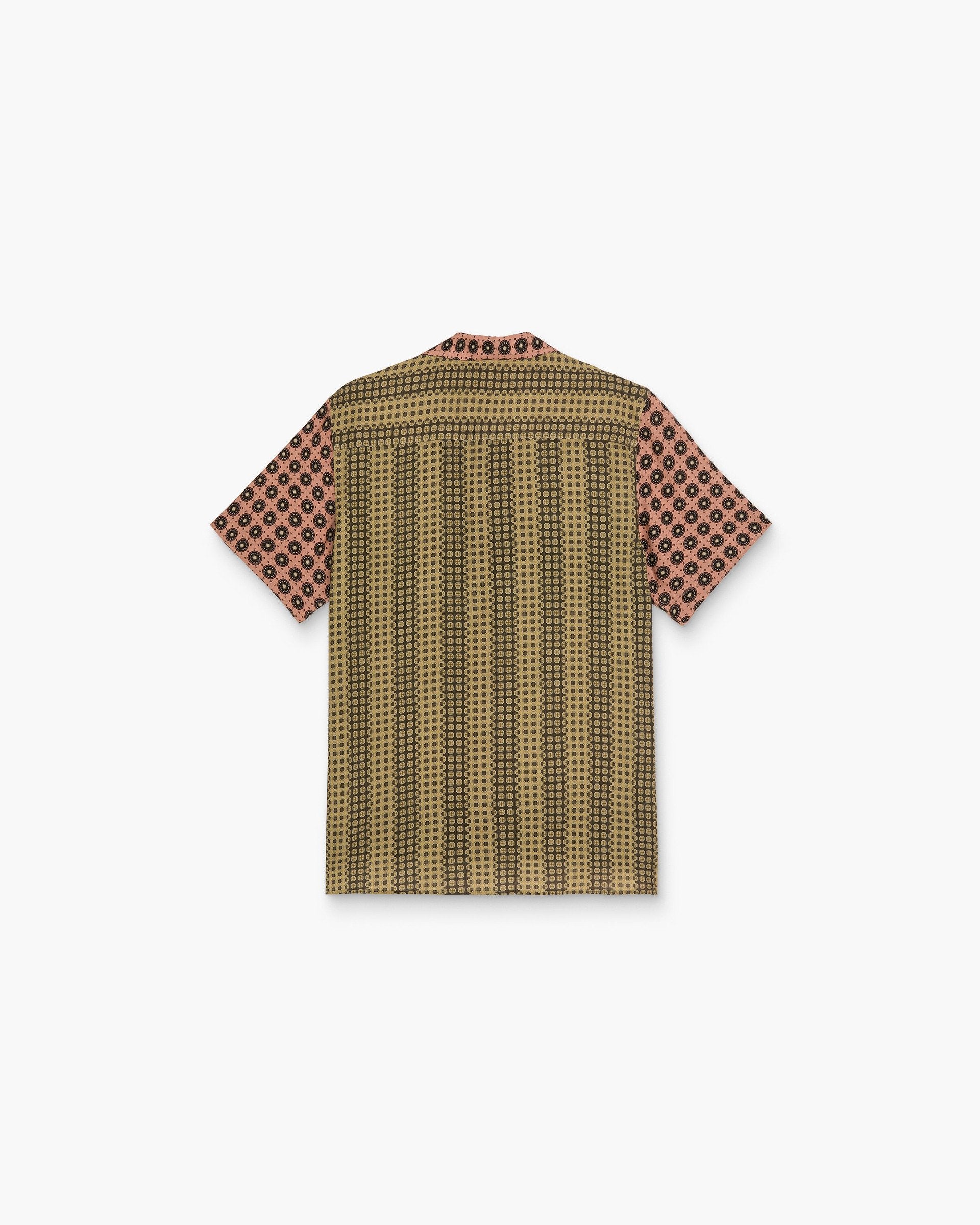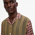 The Reverie viscose shirt has a relaxed fit with a ribbed collar that extends into a button-down front. Crafted from a silky-soft viscose fabric, it's embellished with a duo of bohemian-style geometric prints. Ideal for warmer days.
