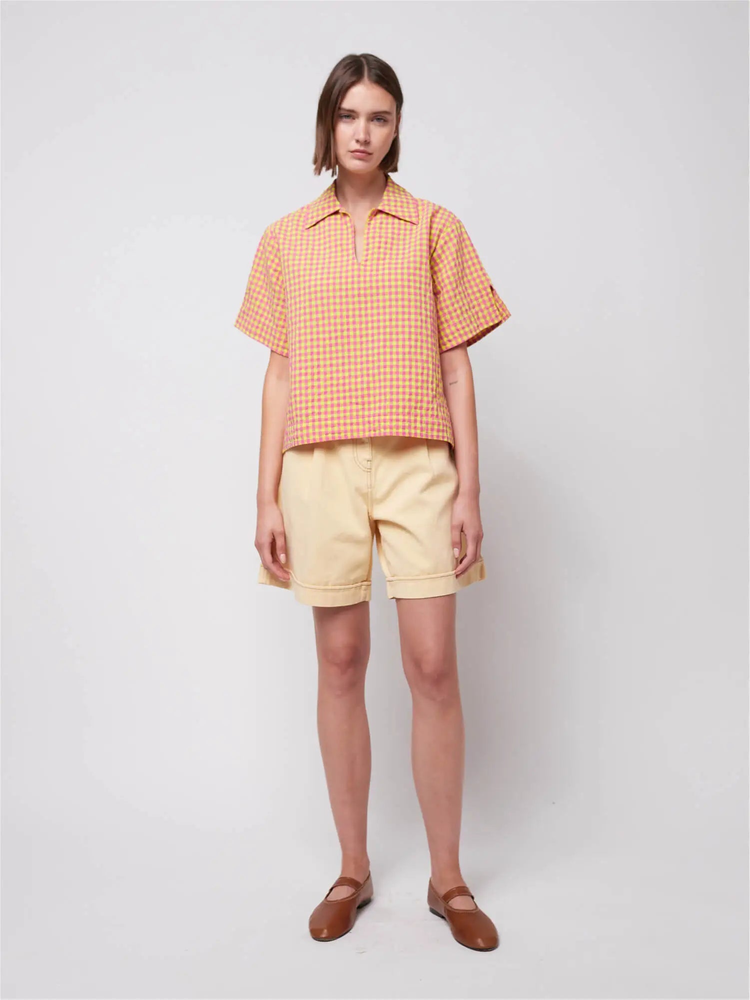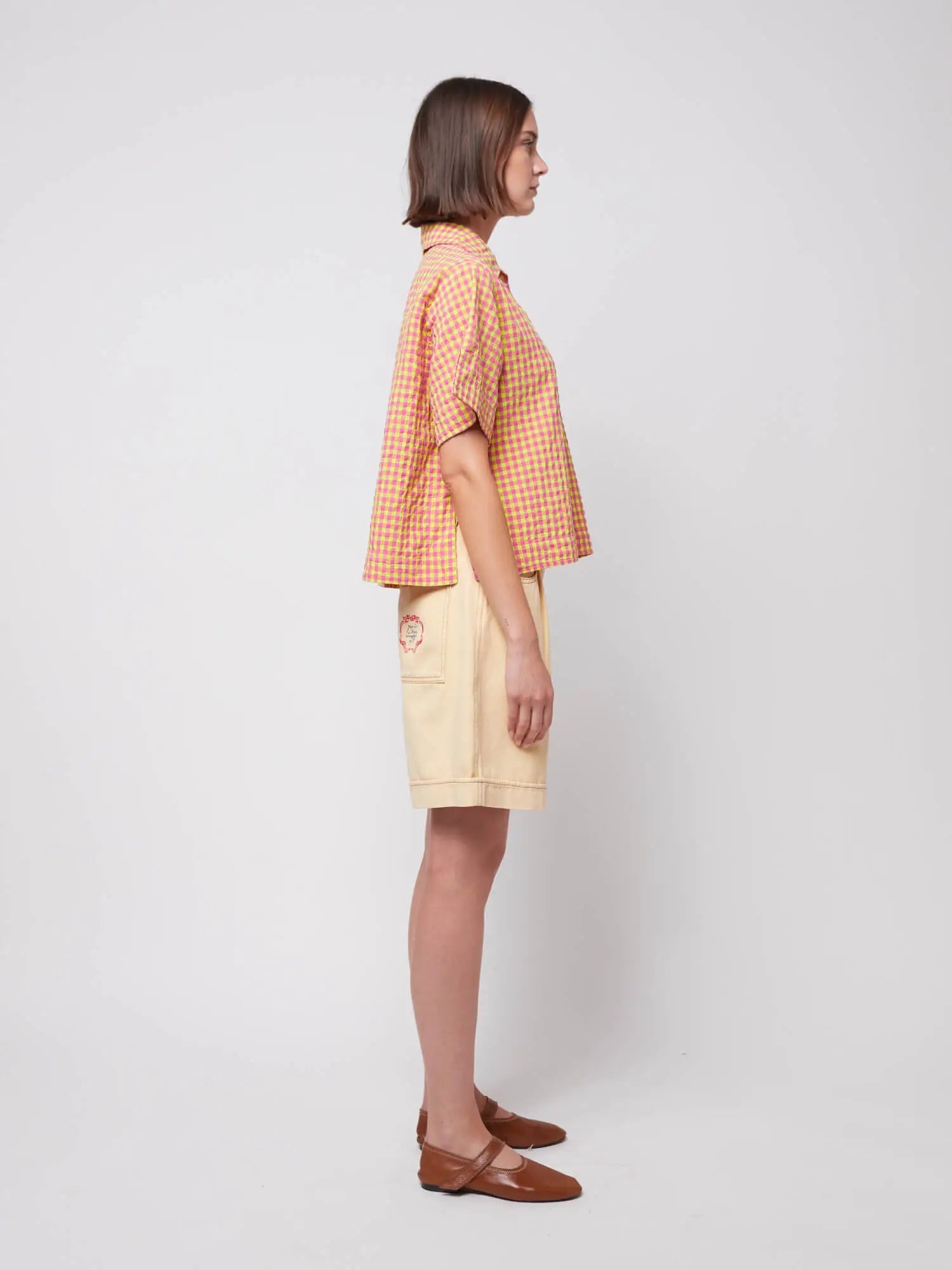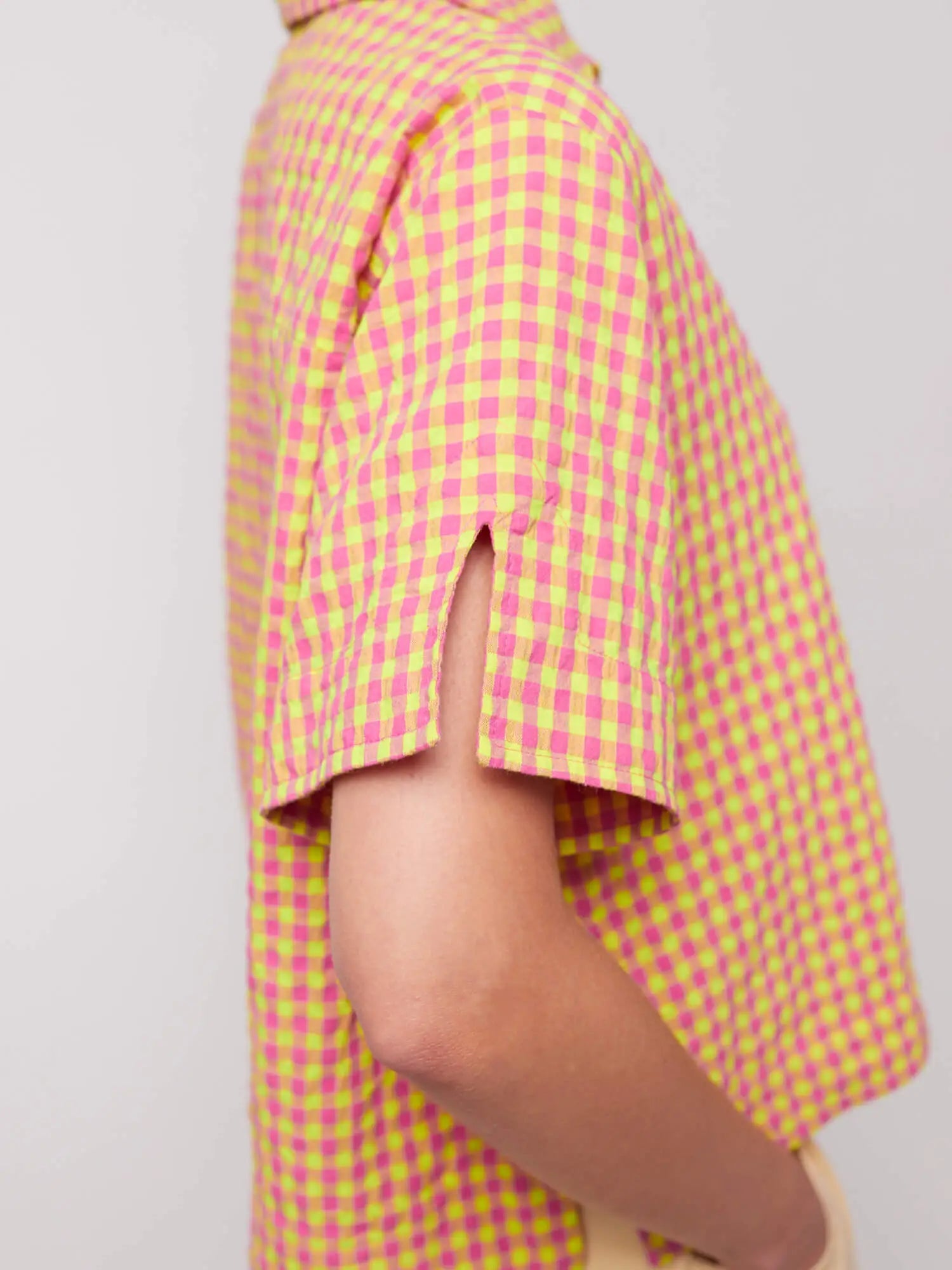 With its multicolored design, this shirt adds a fun yet sophisticated touch to any outfit. Made from a blend of 60% cotton and 40% recycled polyester, the loose, boxy fit and non-stretch fabric create a contemporary silhouette. Responsibly made in Spain, with sustainability in mind.