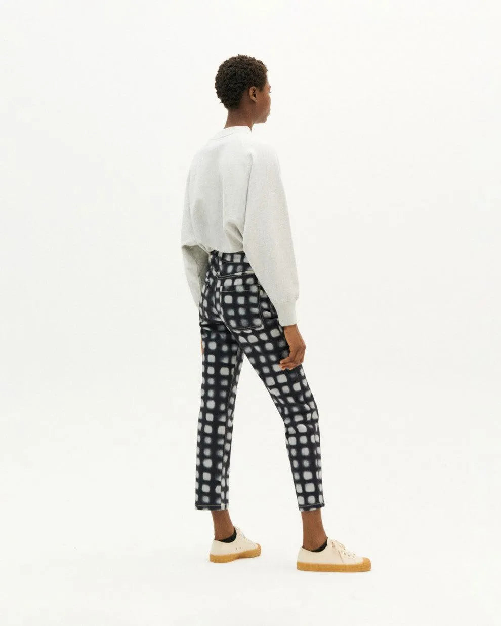 Straight-style five-pocket long trousers. Made with 99% organic cotton and 1% elastane.