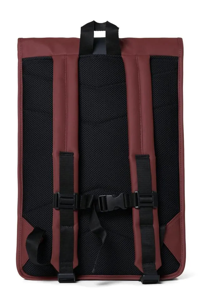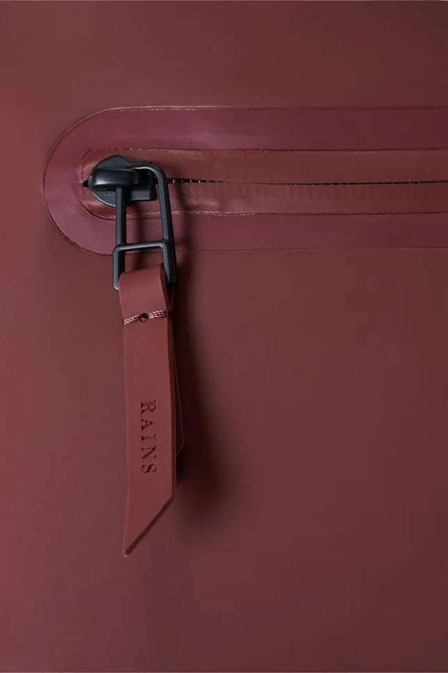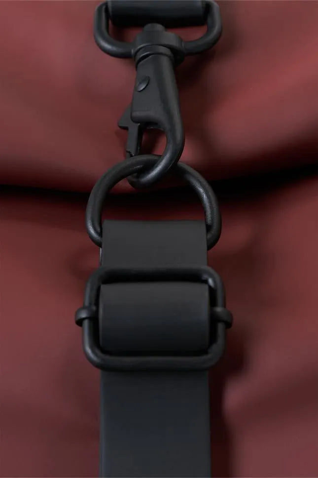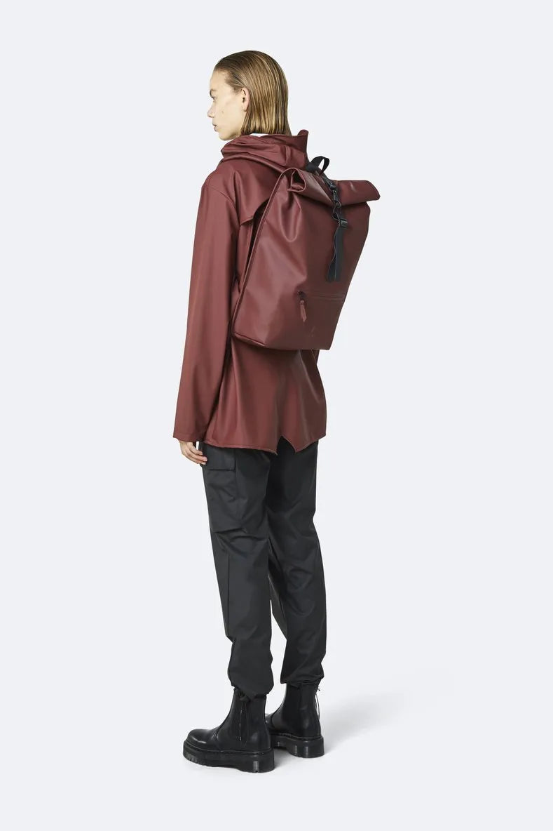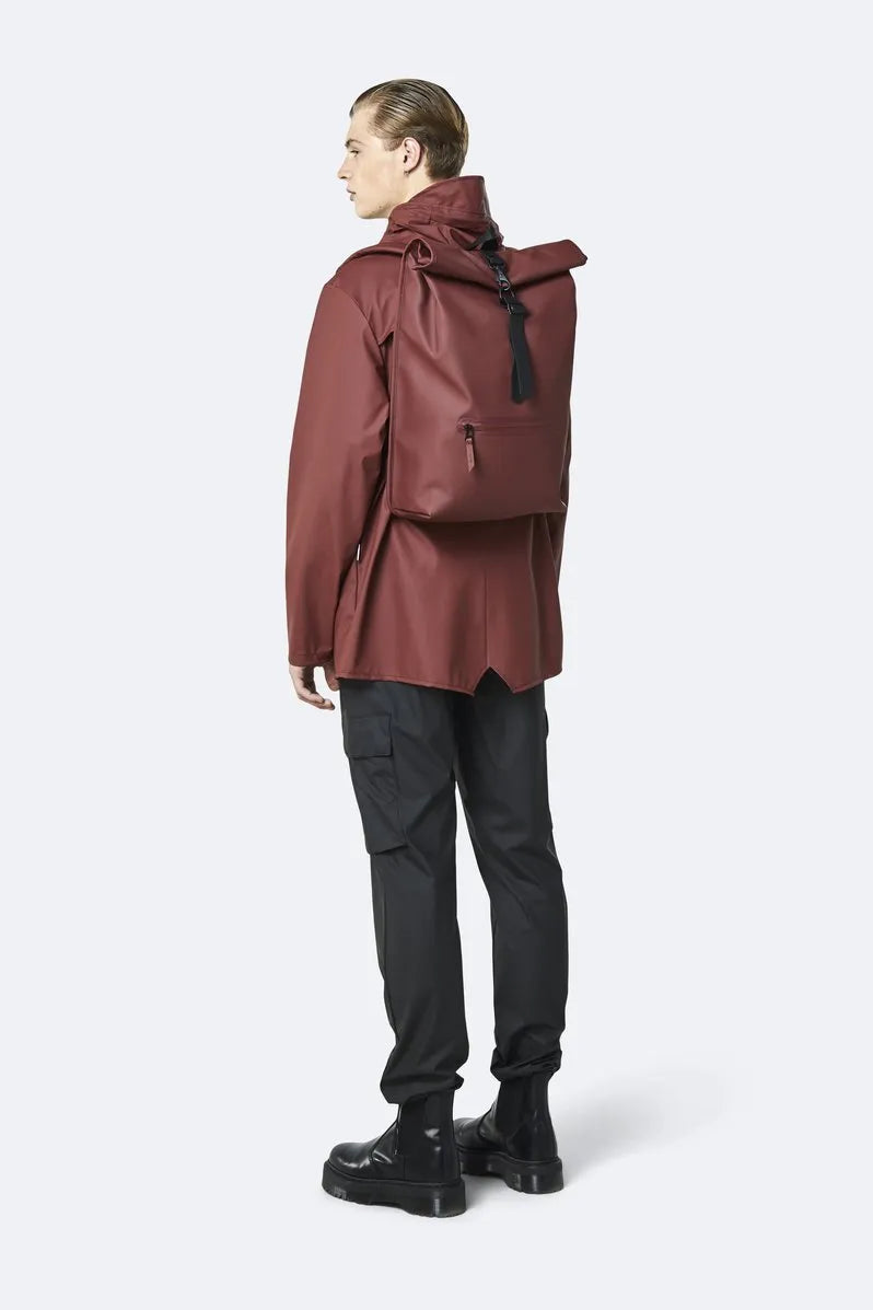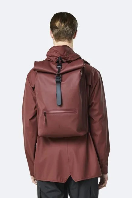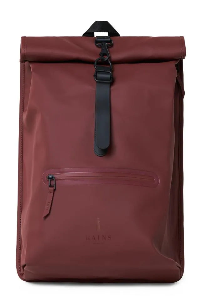 Rolltop Mocksack is Rains' version of a cycling backpack. Made from Rains signature waterproof fabric, this functional backpack has a roll-up closure with an adjustable strap with a loop for a bike lock or similar. Rolltop Mocksack has a large main compartment, an easy-access front pocket, and a side-access laptop compartment. It is completed with a padded back, adjustable shoulder straps, a chest strap, and original Rains hardware.
