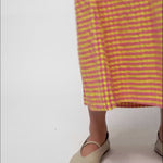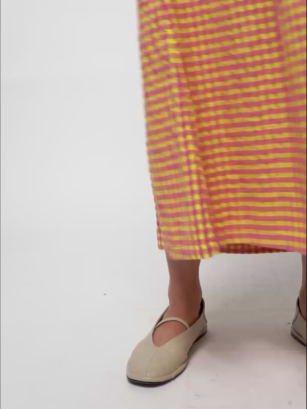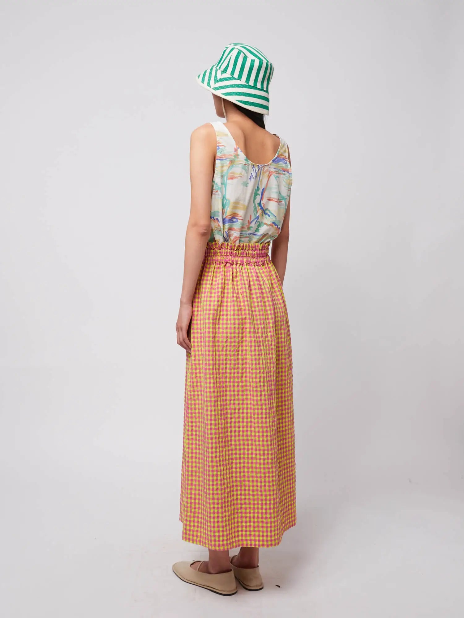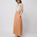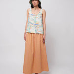 A vibrant addition to any outfit, this multicolored skirt features a flared design that radiates energy and elegance. Made with 60% cotton and 40% recycled polyester, with a non-stretch fabric that enhances its elegant look. Made in Spain, with respect for the environment and the future.
