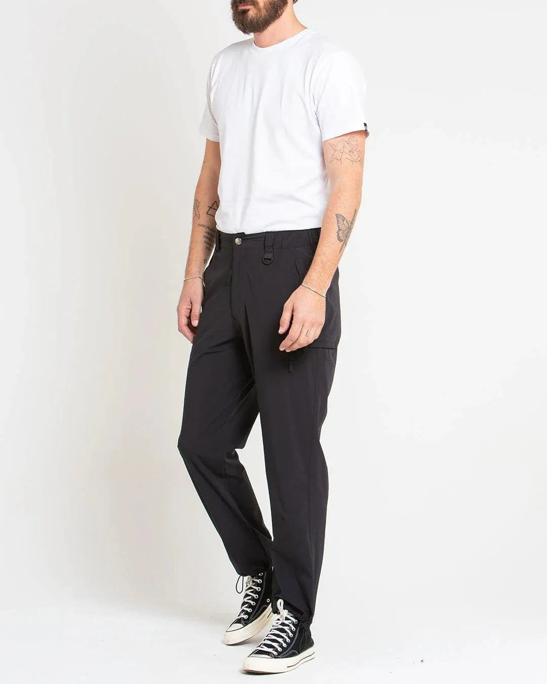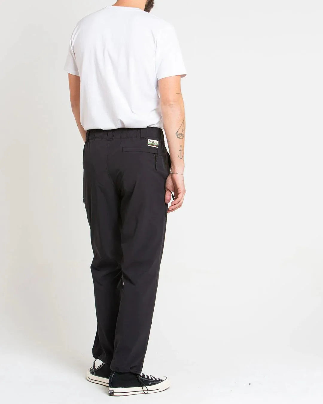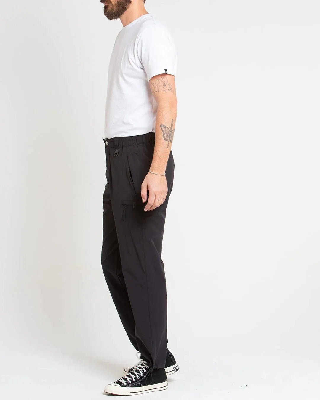 Relaxed fit pant with zippered pockets, branded snap at waist, triangle D-ring,