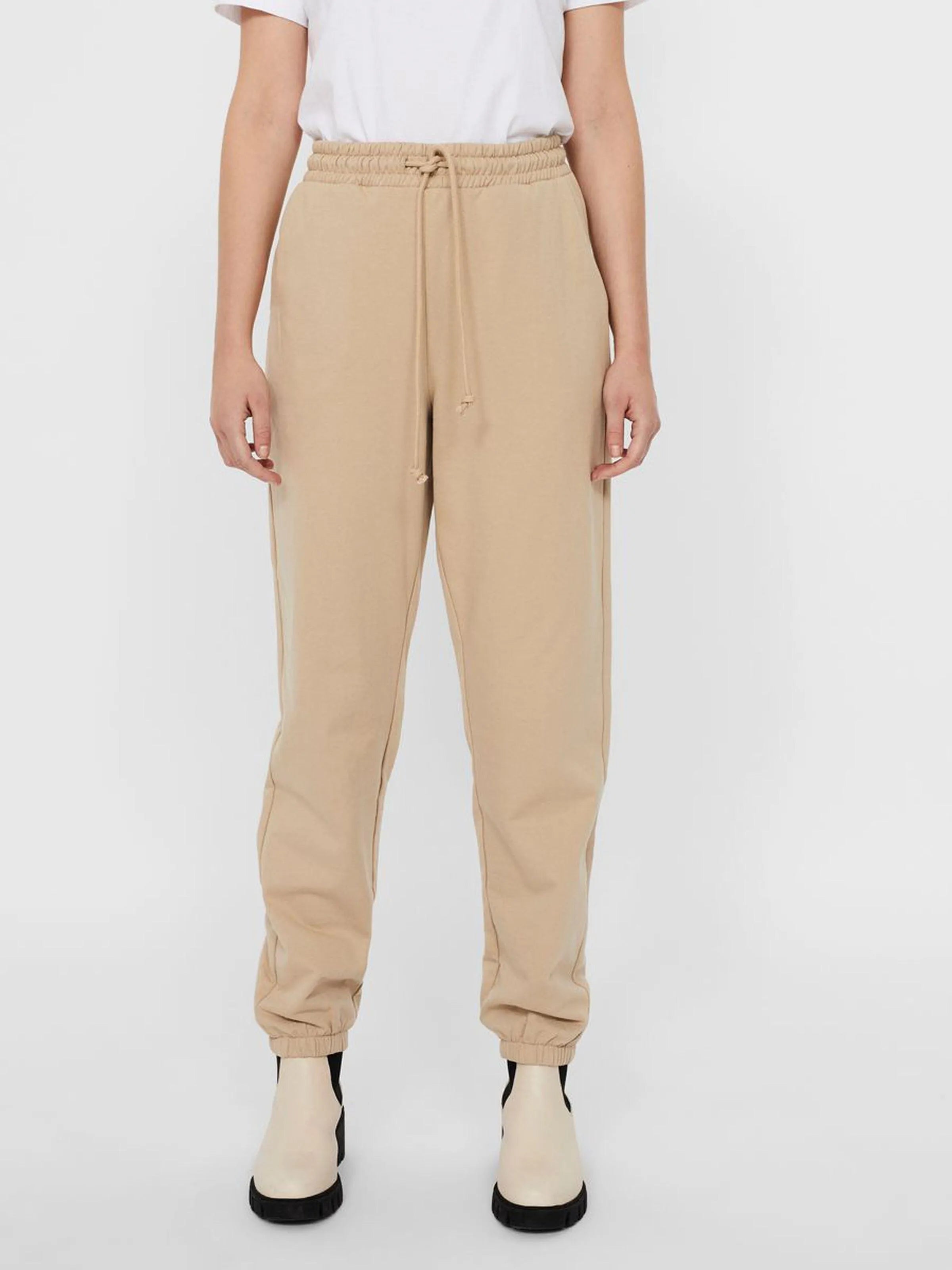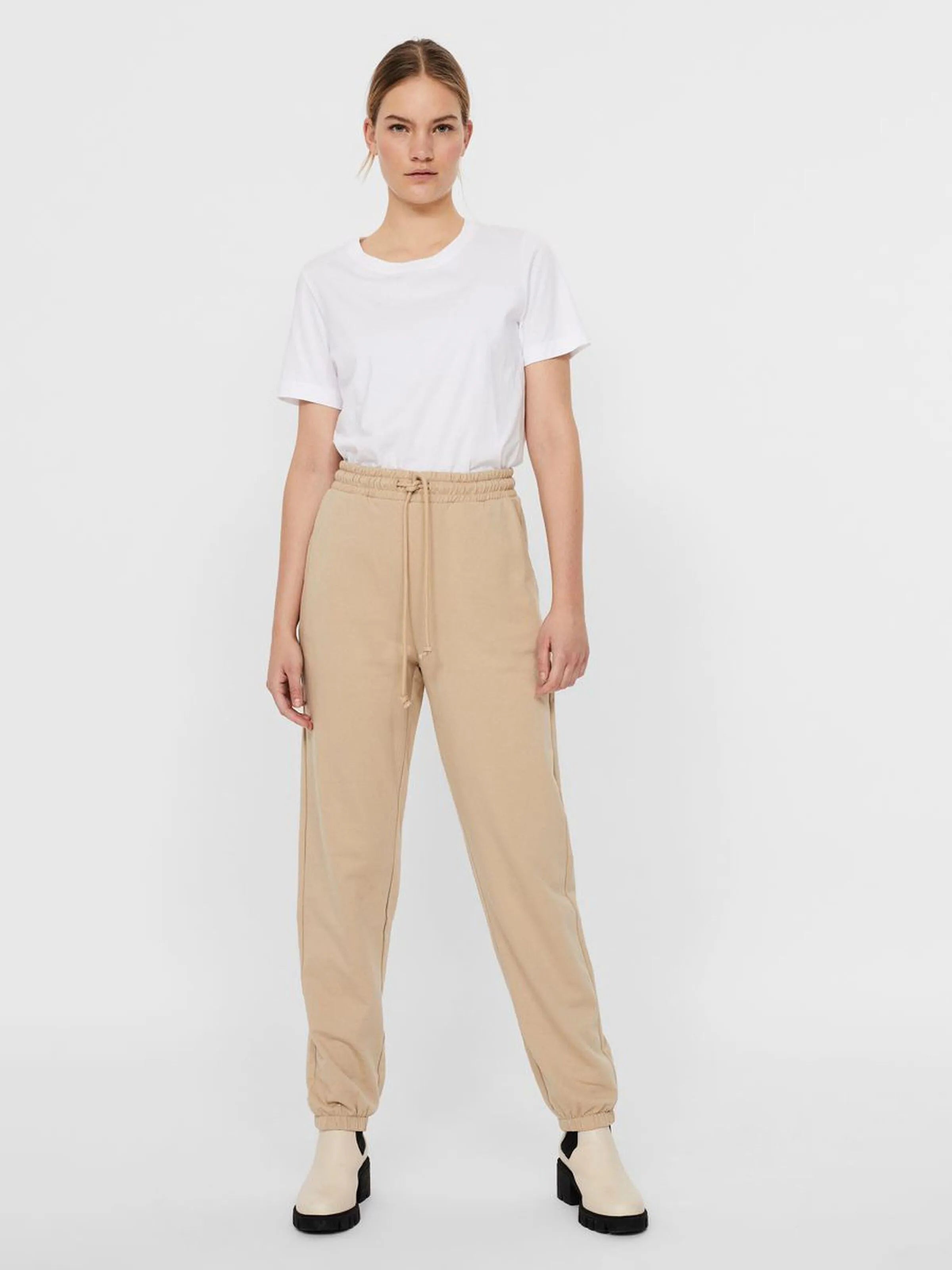 High-waisted sweatpants. The sweatpants also have elasticated waist and ankles. Pair them with a matching sweatshirt for a casual look.