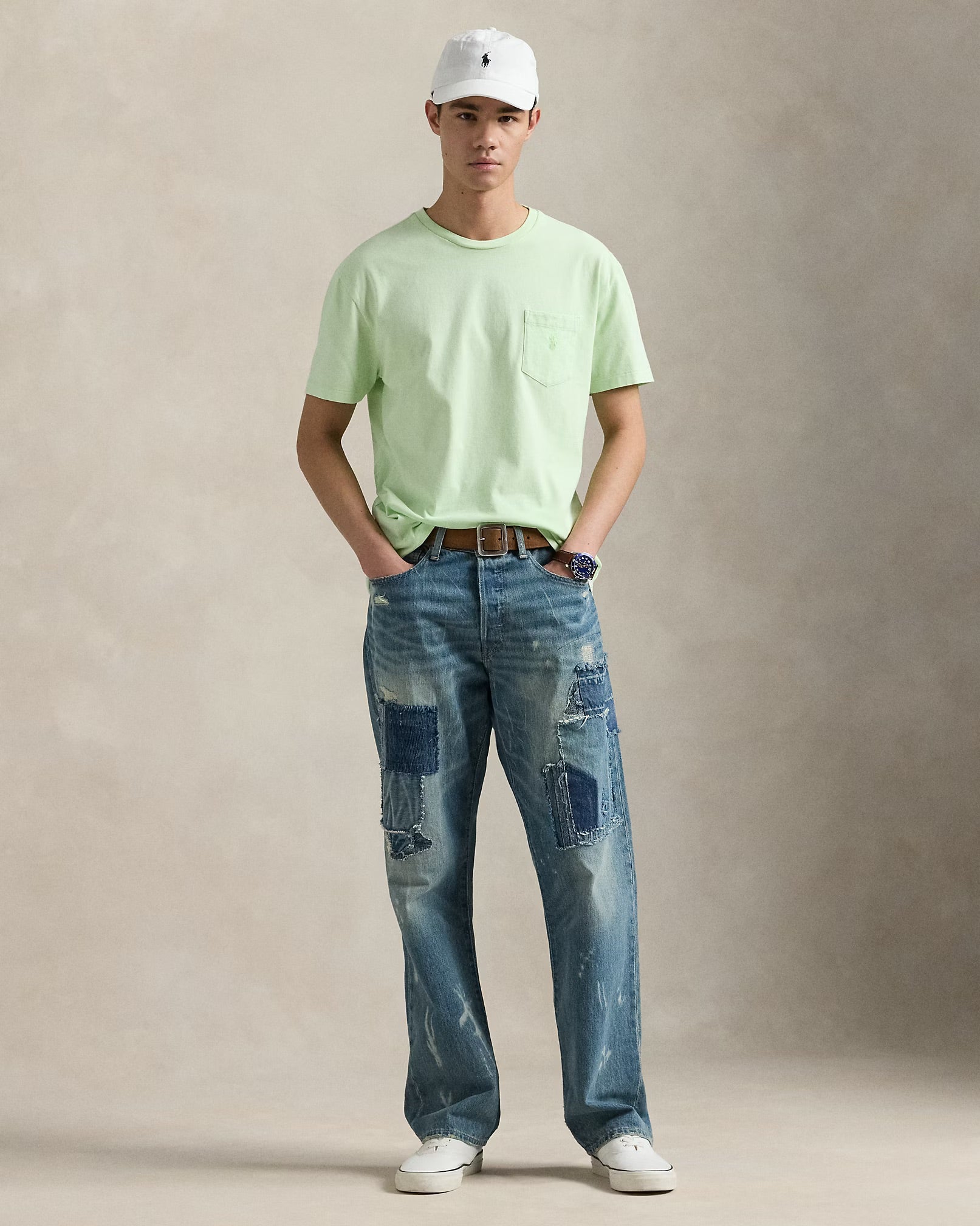 This soft cotton jersey tee has been garment-dyed with mineral ingredients that create a unique look and will fade gracefully over time for a worn-in look.