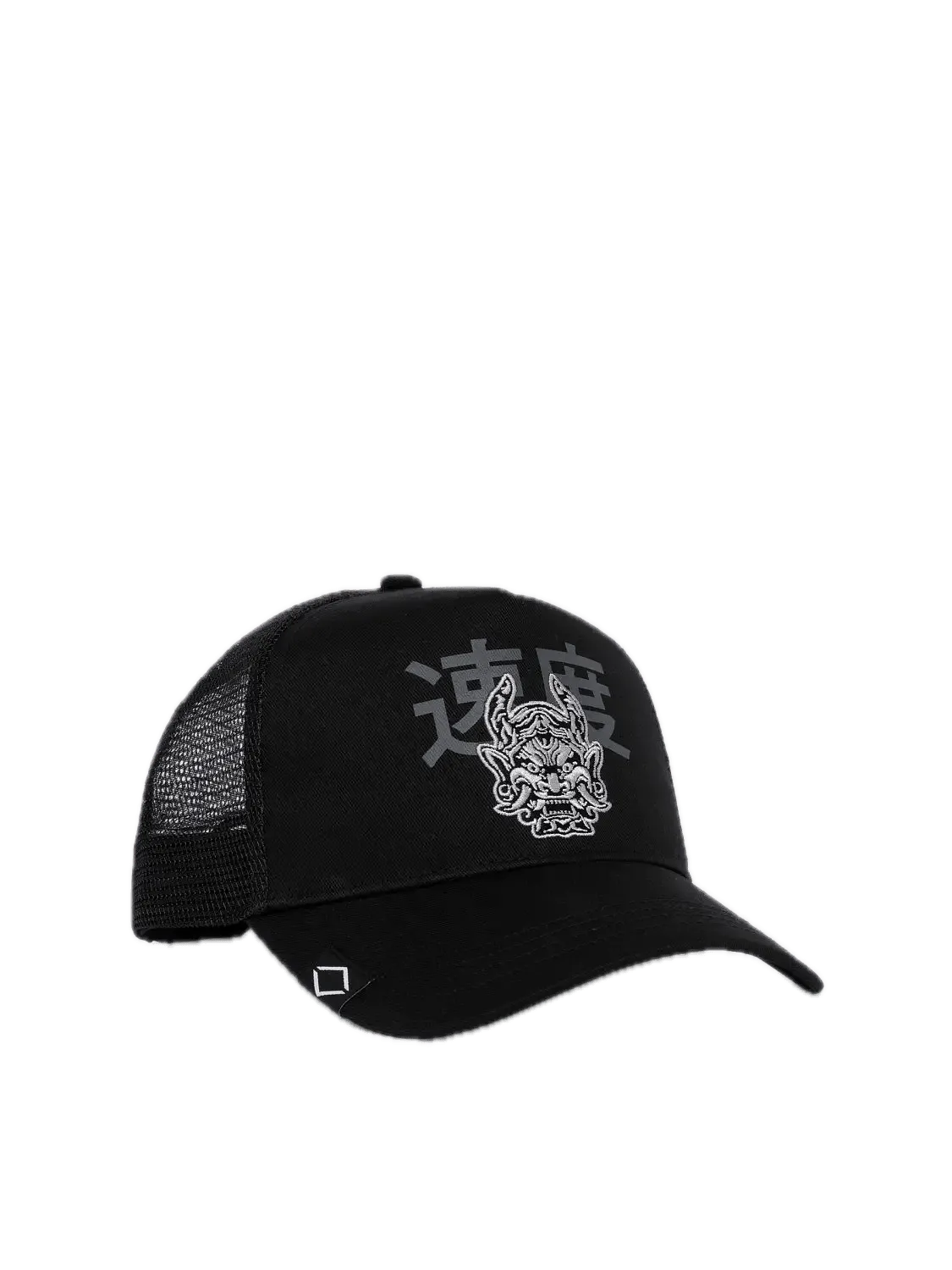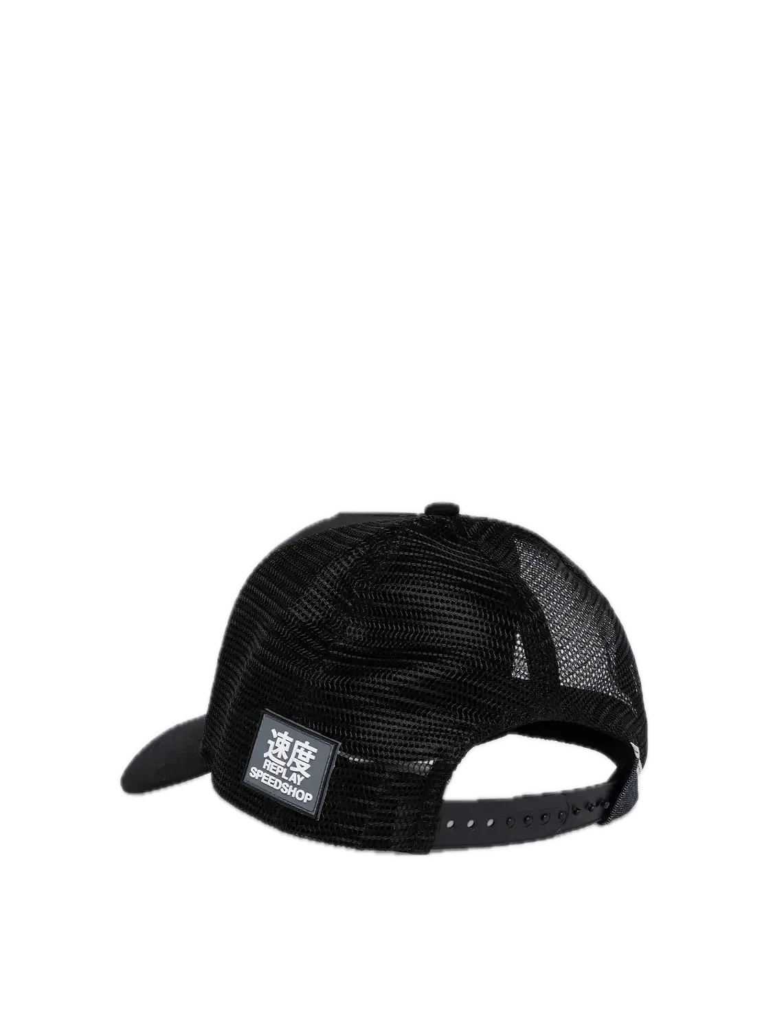 Peaked cap made of cotton twill with mesh back and cotton-blend fabric inner lining. The model is characterized by the personalized inscription embroidered on the front.