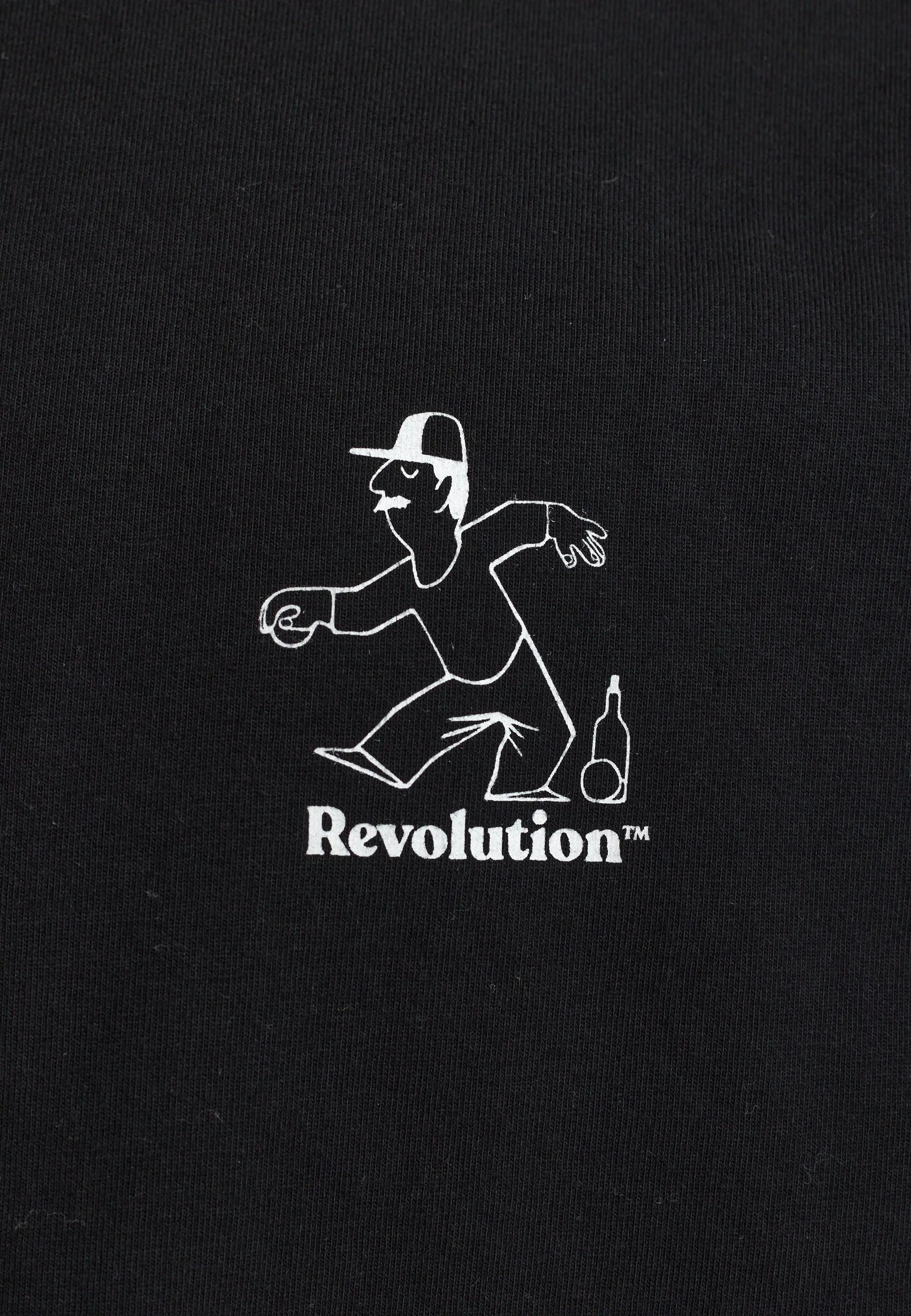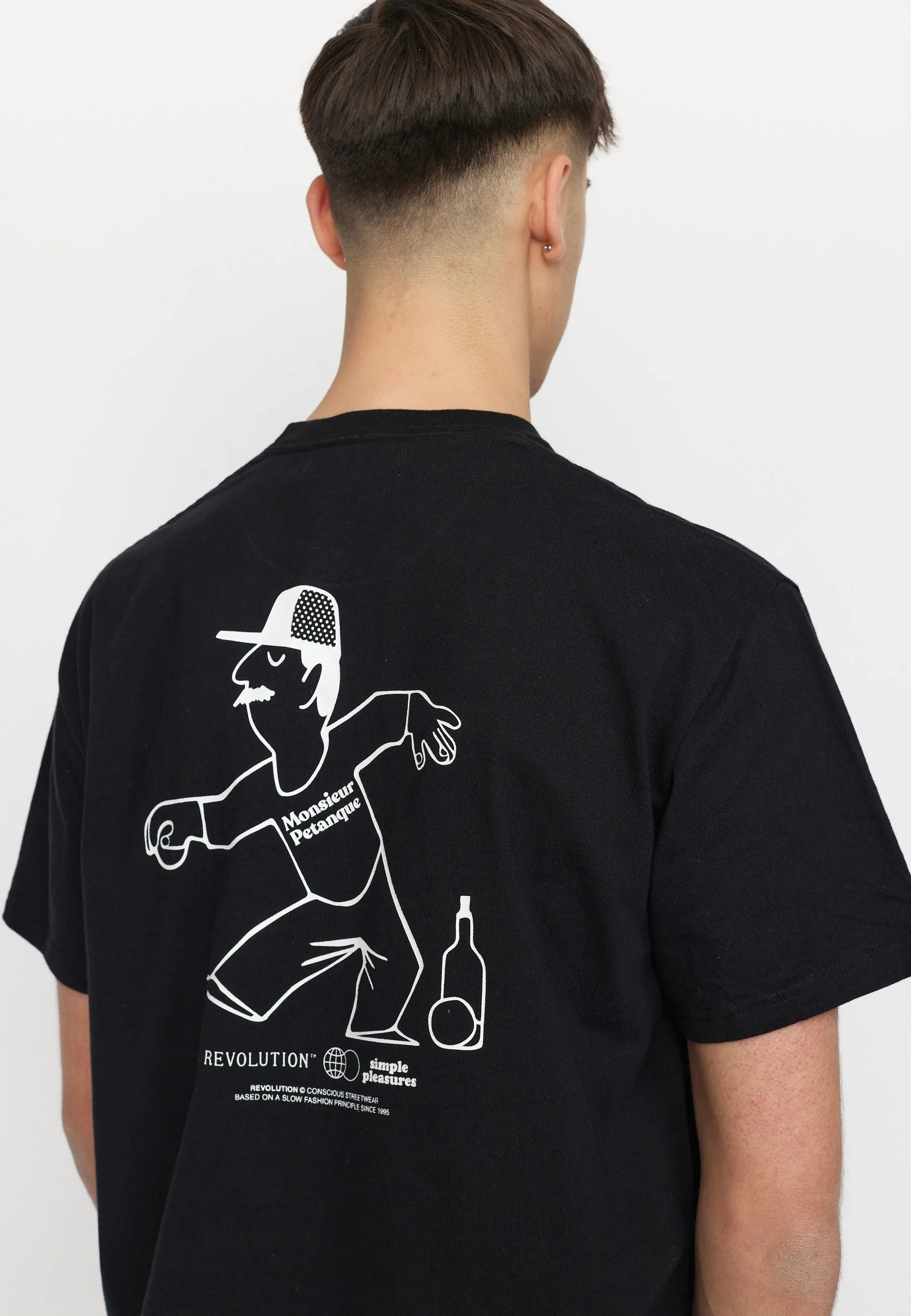 Loose-fitting, crew-neck, short-sleeved T-shirt made from 220 g/m² organic cotton jersey. The thick, crisp-feel knit ensures the T-shirt's stability and durability. The organic cotton is grown from non-genetically modified seeds, without chemical fertilizers or pesticides, which promotes biodiversity and has a lower ecological impact. The T-shirt features a small monochrome print on the chest, a large print in the center of the back, and a branded label at the bottom.