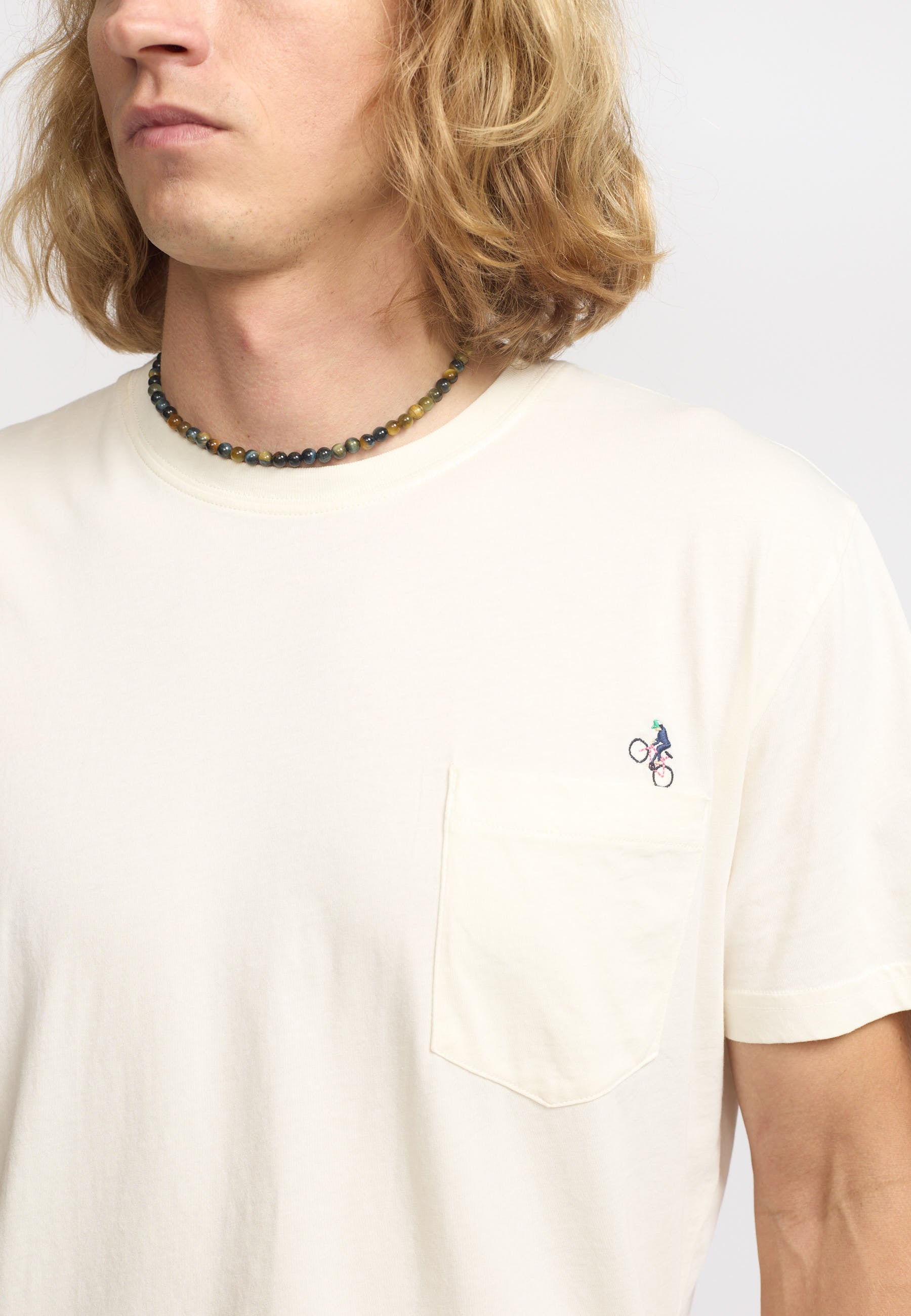 Regular-fit T-shirt with a pocket, round neck, and short sleeves, made from 160 g/m² organic cotton jersey. A small, playful, colorful embroidery on the chest pocket adds a subtle touch of personality. The finish adds softness and ensures the style's stability and durability.