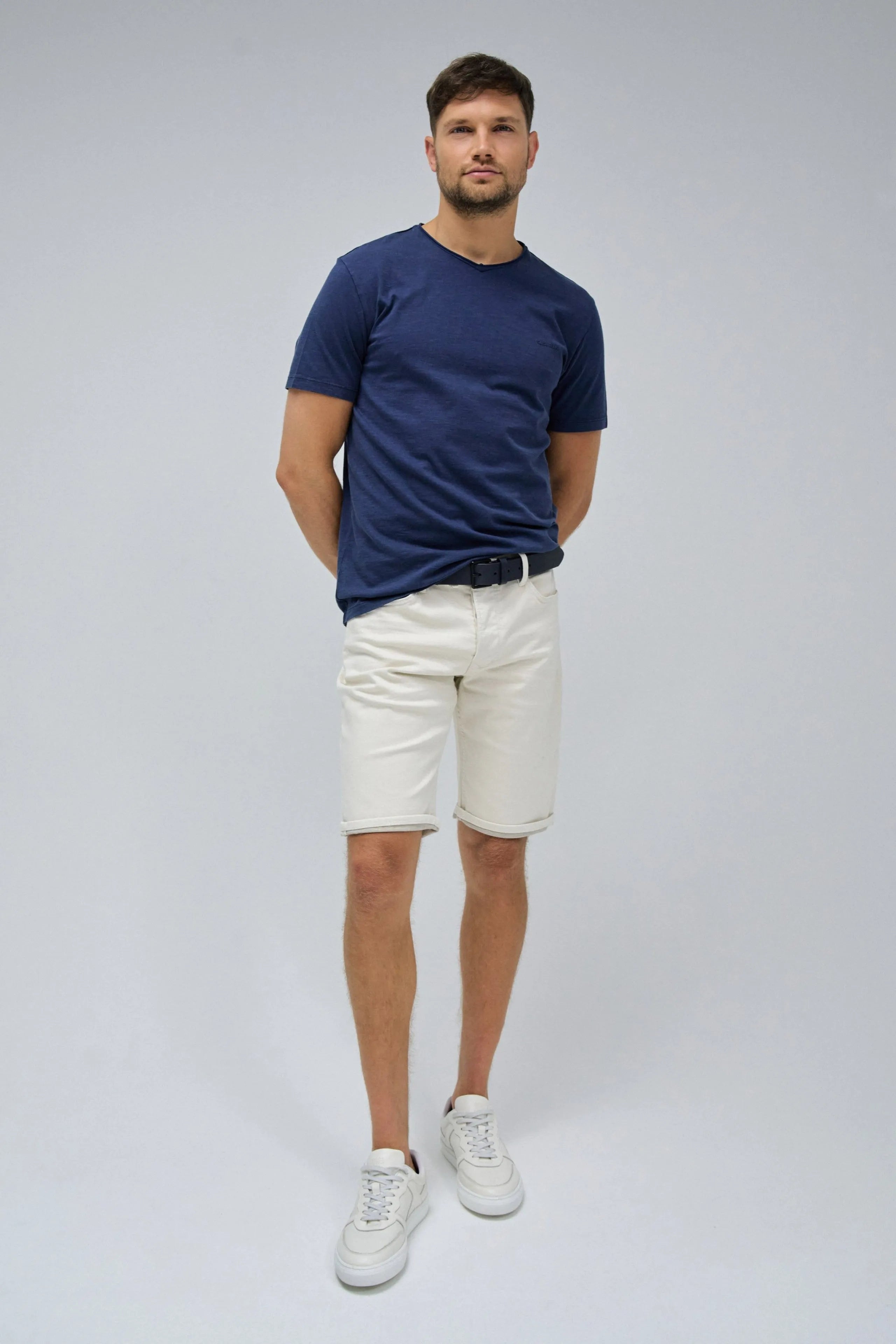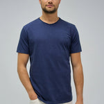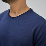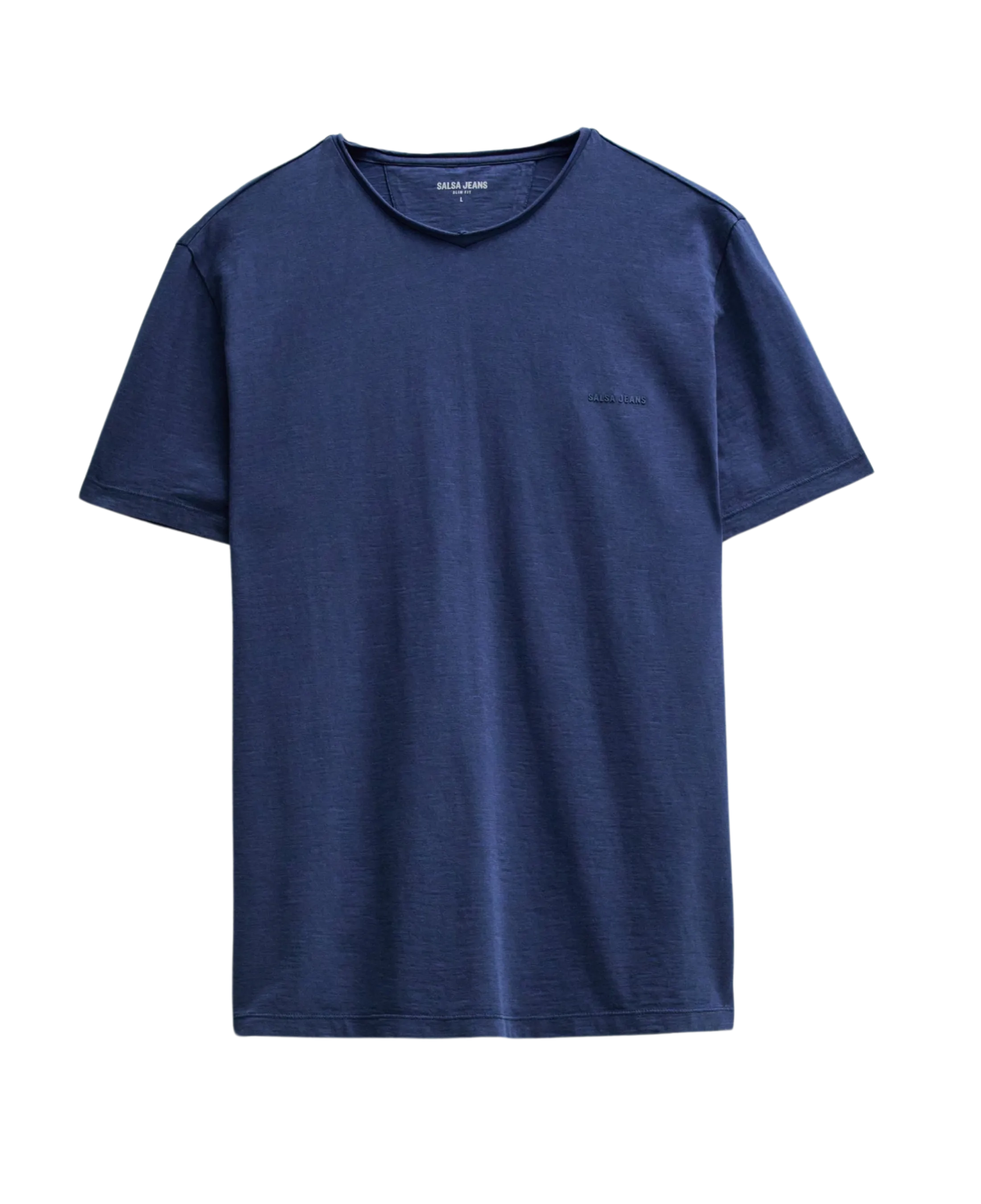 Tie-dye T-shirt. Logo detail on the chest. Blue. Slim fit. Short sleeves. V-neck.