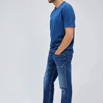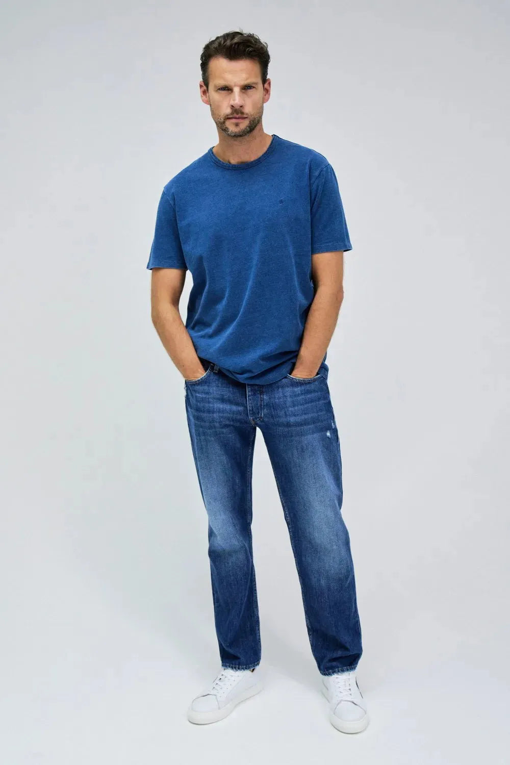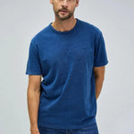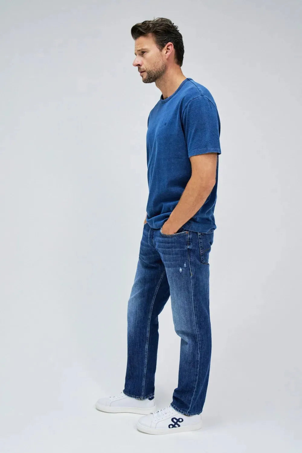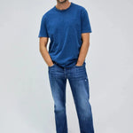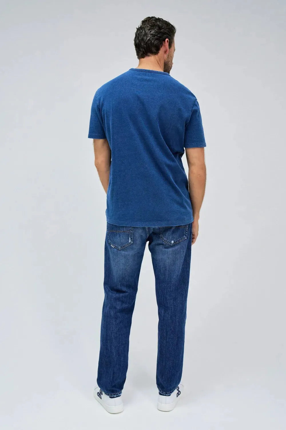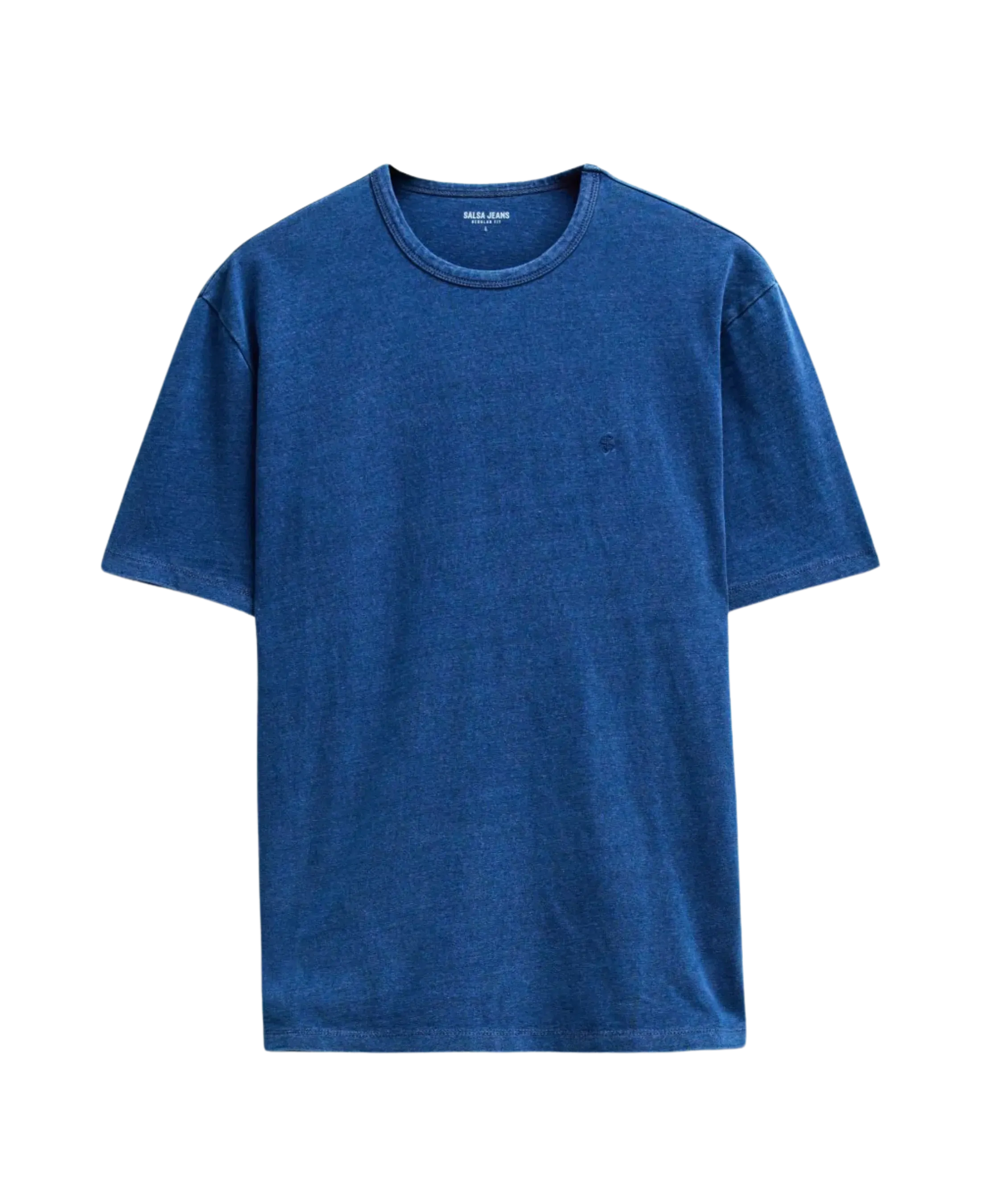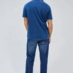 Logo T-shirt. Short sleeves. Medium wash indigo blue. Crew neck. Regular fit.