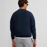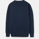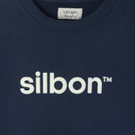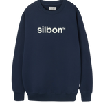 Silbon flock navy blue sweatshirt made from 100% cotton. It features a round neck and long sleeves with elastic cuffs. It features contrasting cream lettering on the chest. Made in Portugal.